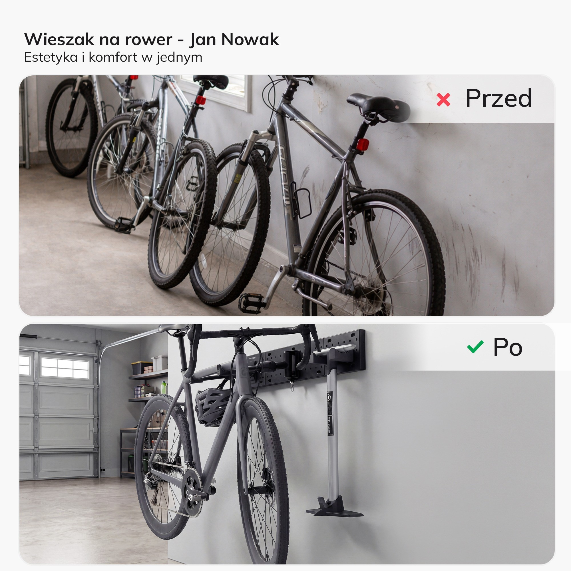 Už žádné kompromisy! S naším nástěnným držákem na kolo získáte nejen praktické řešení pro uložení vašeho kola, ale také elegantní doplněk, který zkrášlí váš domov. Uvolněte prostor, chraňte své kolo a užívejte si uspořádané a estetické prostředí.