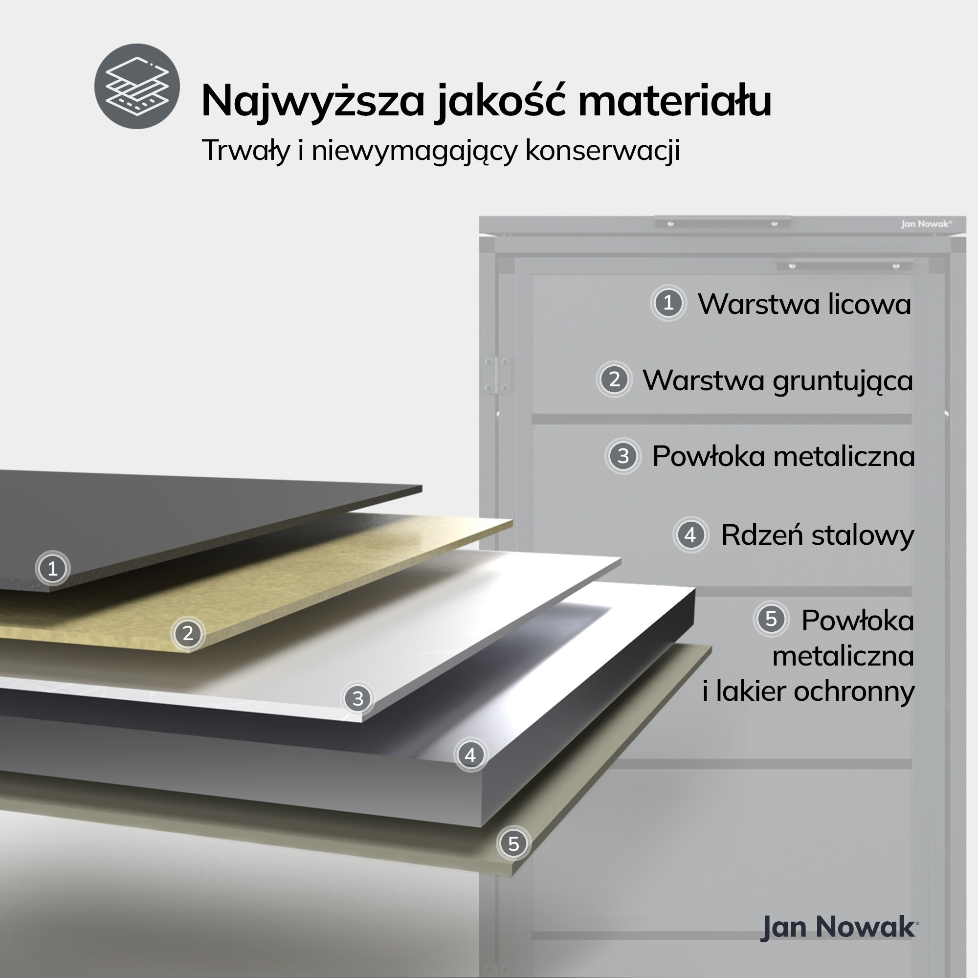Naše kontejnerové zabudovy jsou vyrobeny z pozinkovaného plechu lakovaného práškovou barvou, což zaručuje vysokou odolnost proti korozi, promáčknutí a poškrábání. Můžete si být jisti, že tato investice se vám vyplatí na dlouhá léta.