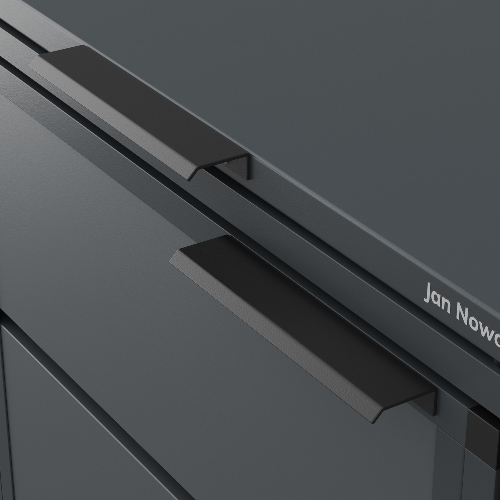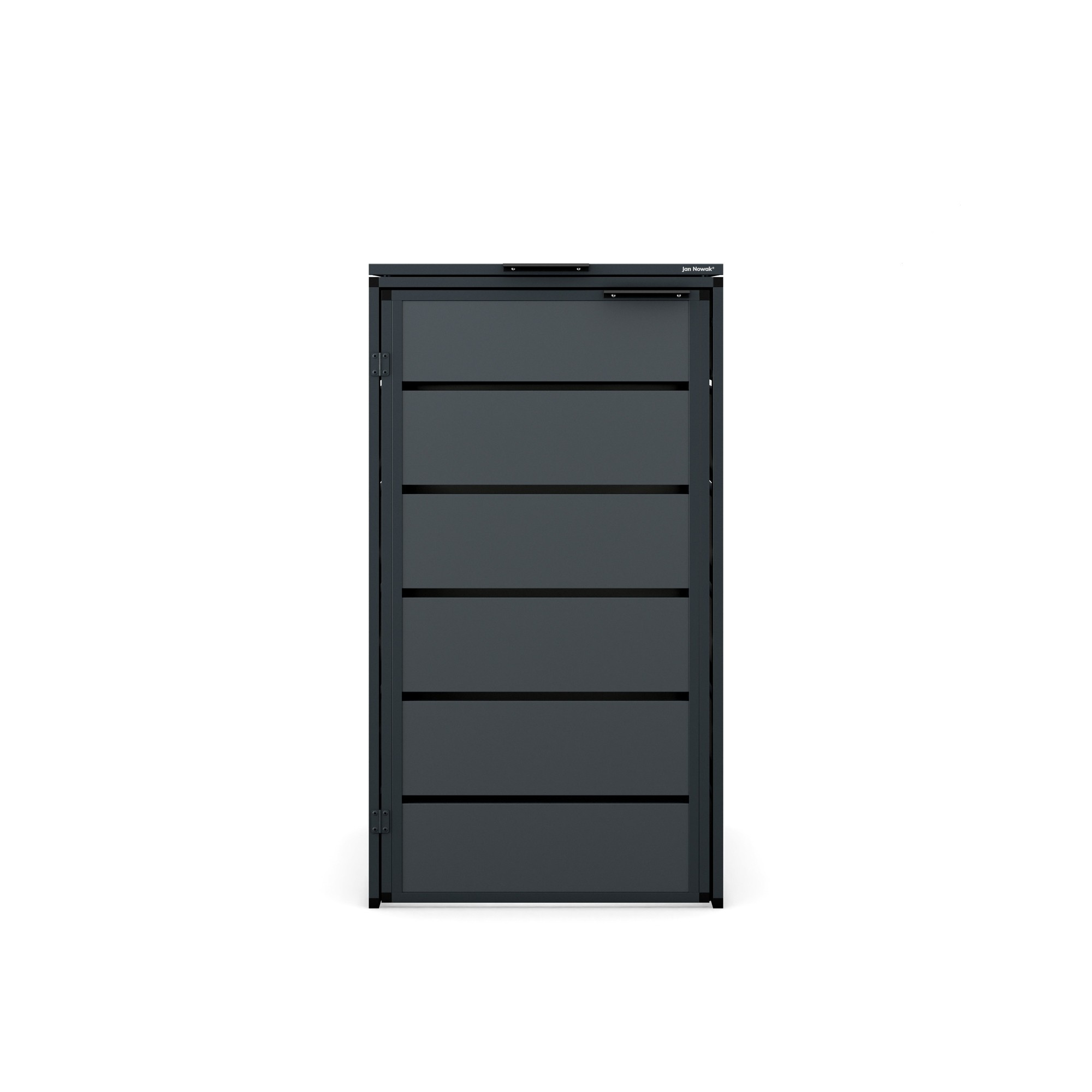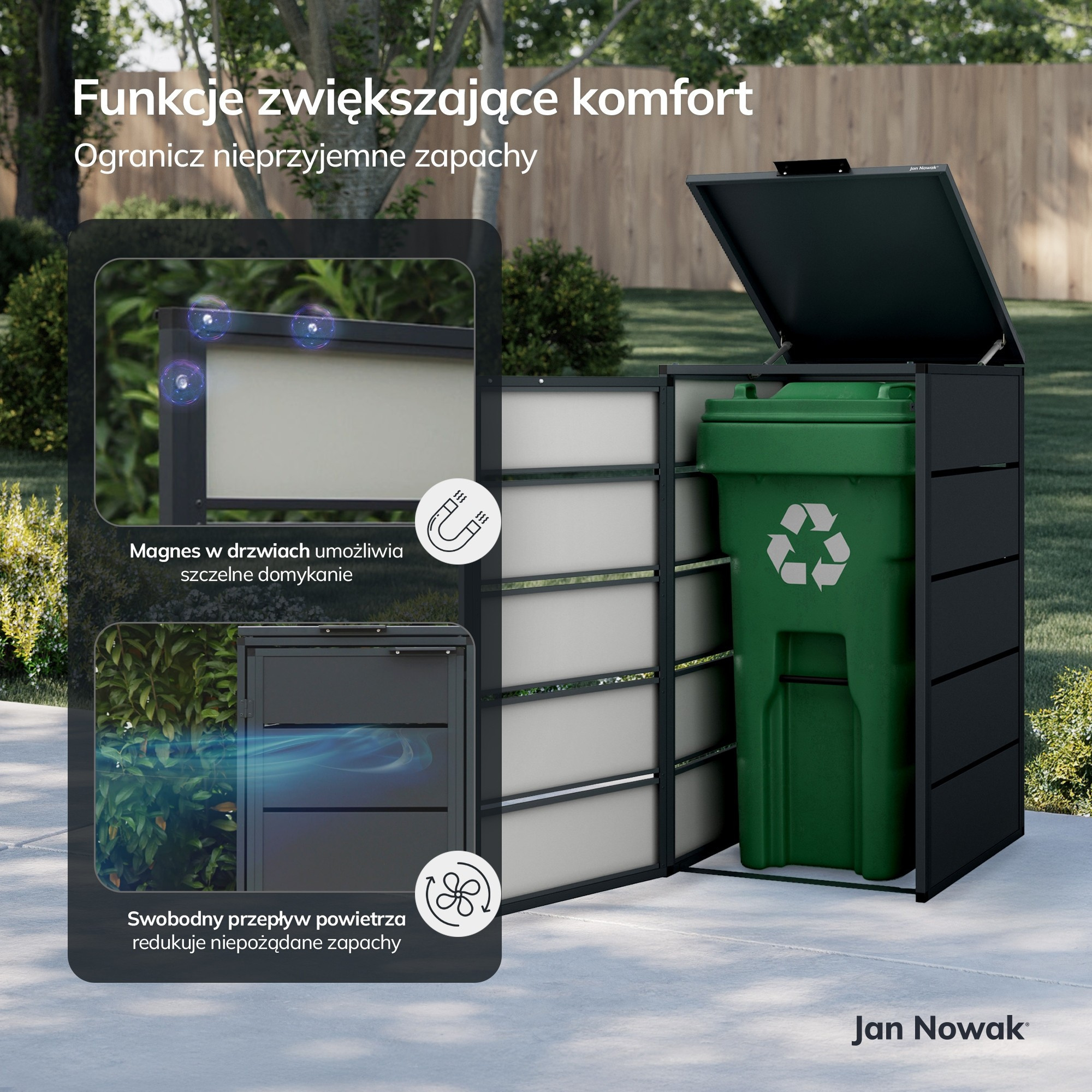 Kontejnerová zabudova se vyznačuje moderním a minimalistickým designem, který se hodí do jakéhokoli prostředí. Její antracitová barva působí elegantně a nenápadně, takže se snadno začlení do vašeho exteriéru.
