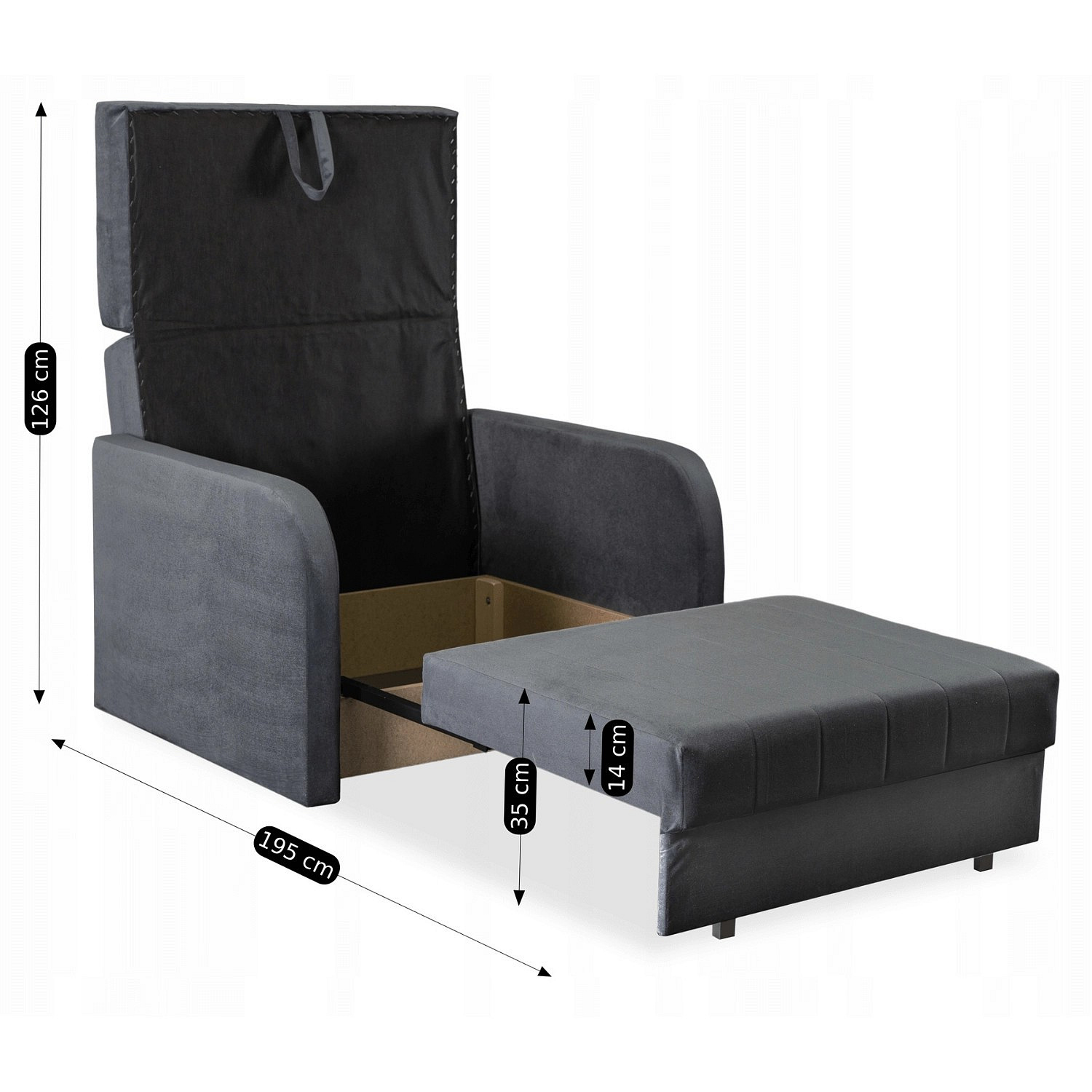 | Hloubka křesla po rozložení | 195 cm |