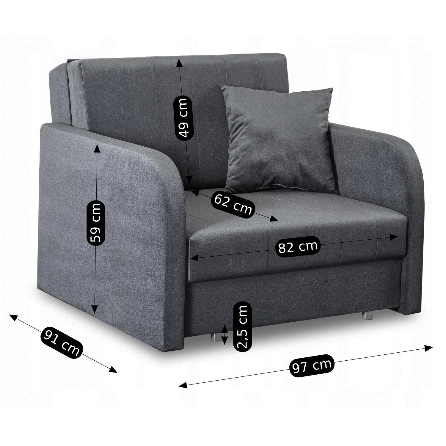 Jednolůžkové rozkládací křeslo VERO Šedé