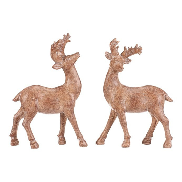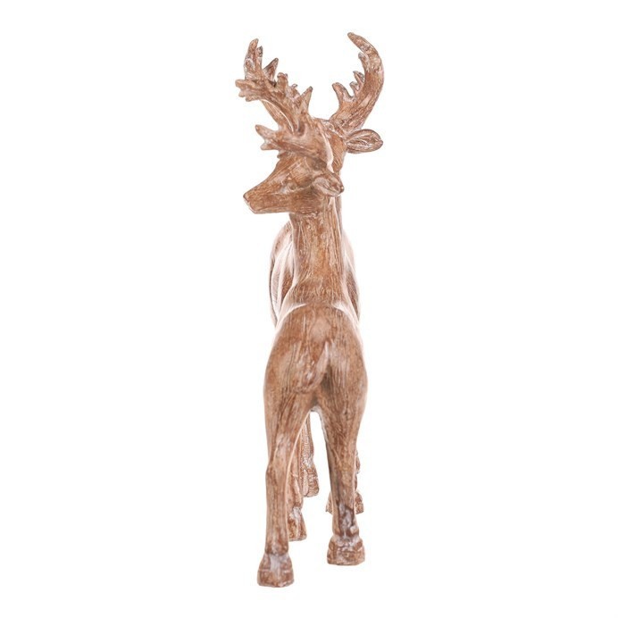 Tato soška jelena z polyresinu o výšce 25 cm vypadá, jako by byla vyřezaná skutečně ze dřeva. Povrch totiž perfektně napodobuje texturu dřeva, která dodává sošce realistický vzhled. Tato zvířecí dekorace je k dispozici ve dvou různých vyhotoveních, a je ideální pro oživení vašeho interiéru zejména během Vánoc a zimního období. Cena je uvedena za 1 kus.