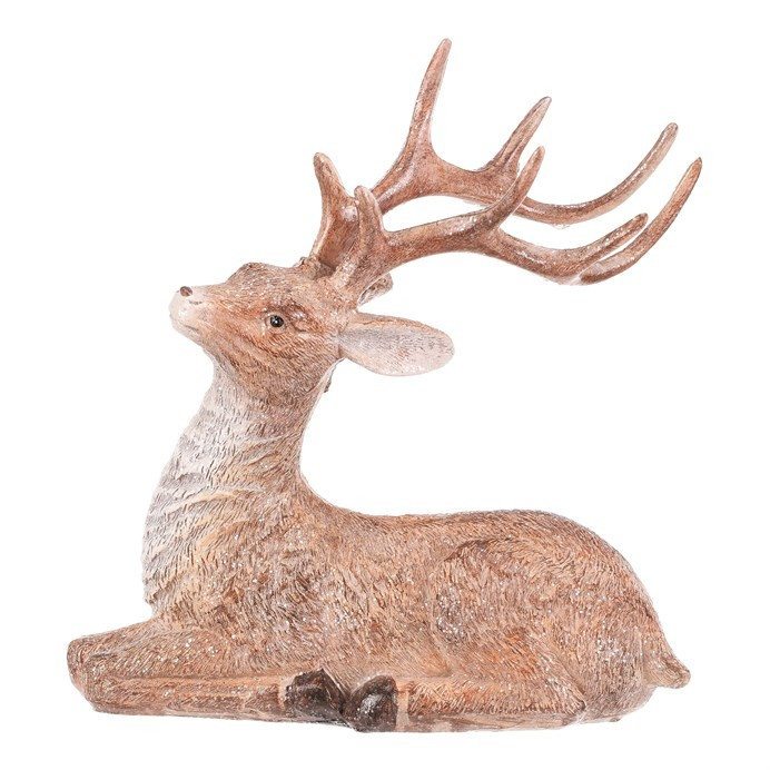 Zvířecí figurka, v podobě sedícího jelena z polyresinu, vám dokonale oživí sváteční prostor, ať už na stole, poličce, nebo jiném viditelném místě. Vytvořte si díky němu pohádkové zvířecí království společně s dalšími figurkami ať už právě jelenů, nebo dalších druhů sošek a přízdob, které nabízíme. Je hnědý s krásně tvarovaným parožím a doplněný jemnými třpytkami, které umocní kouzelnou vánoční atmosféru u vás v teple domova.