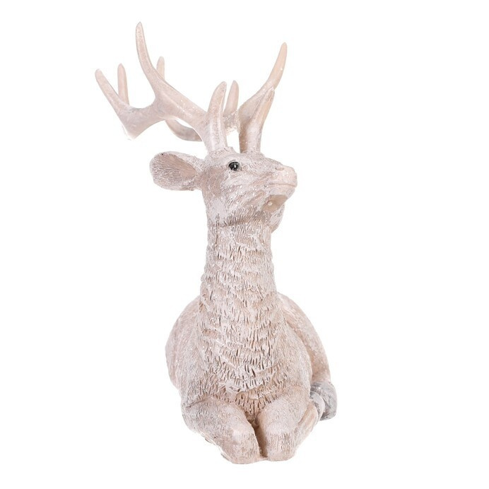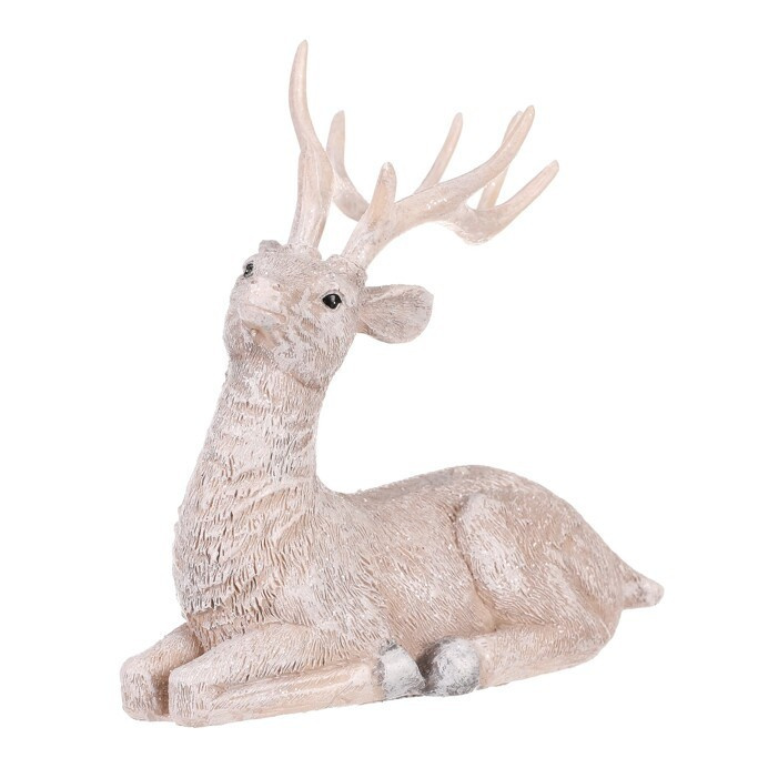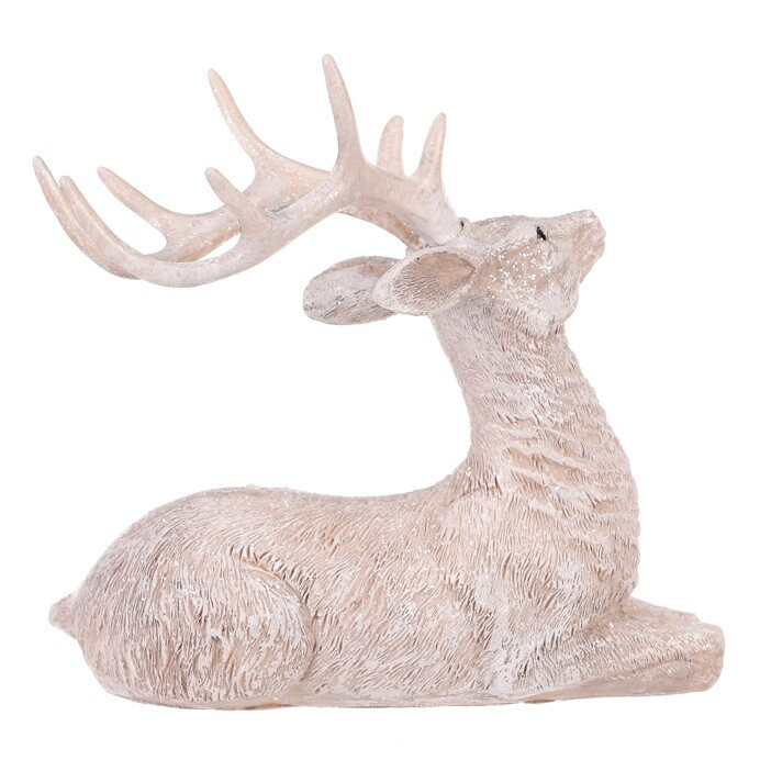 Jelen - polyresinová figurka, sedící, vel. L, bílý