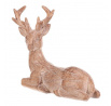 Jelen - polyresinová figurka, sedící, vel. M, imitace dřeva