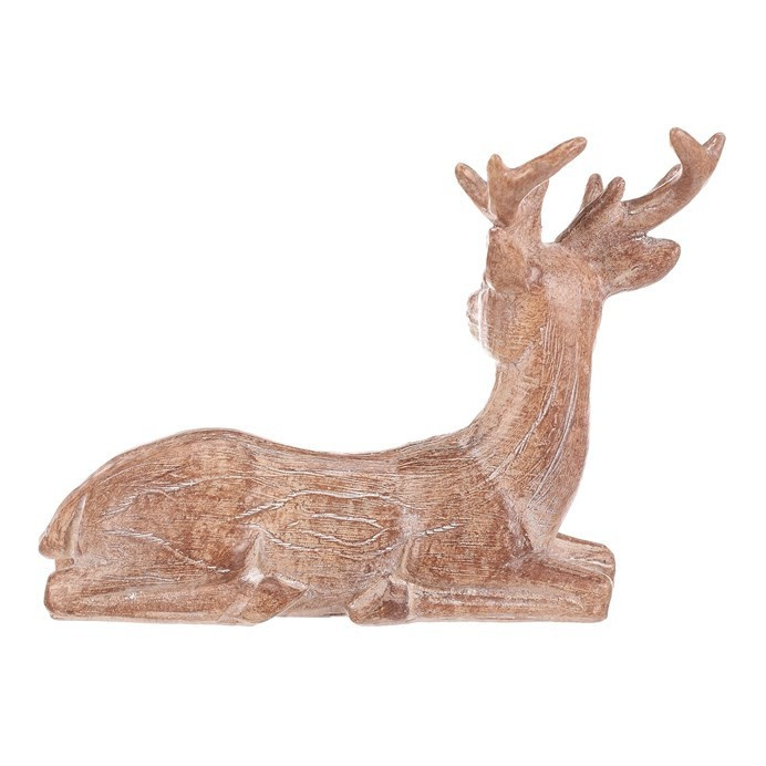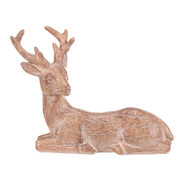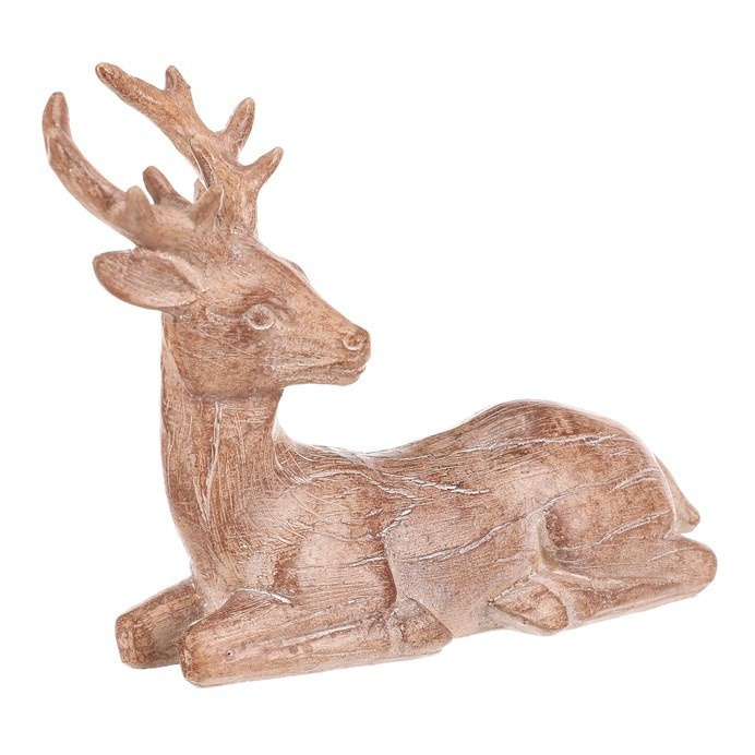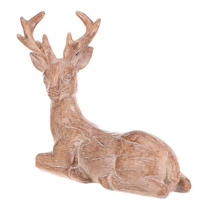 Jelen - polyresinová figurka, sedící, vel. M, imitace dřeva