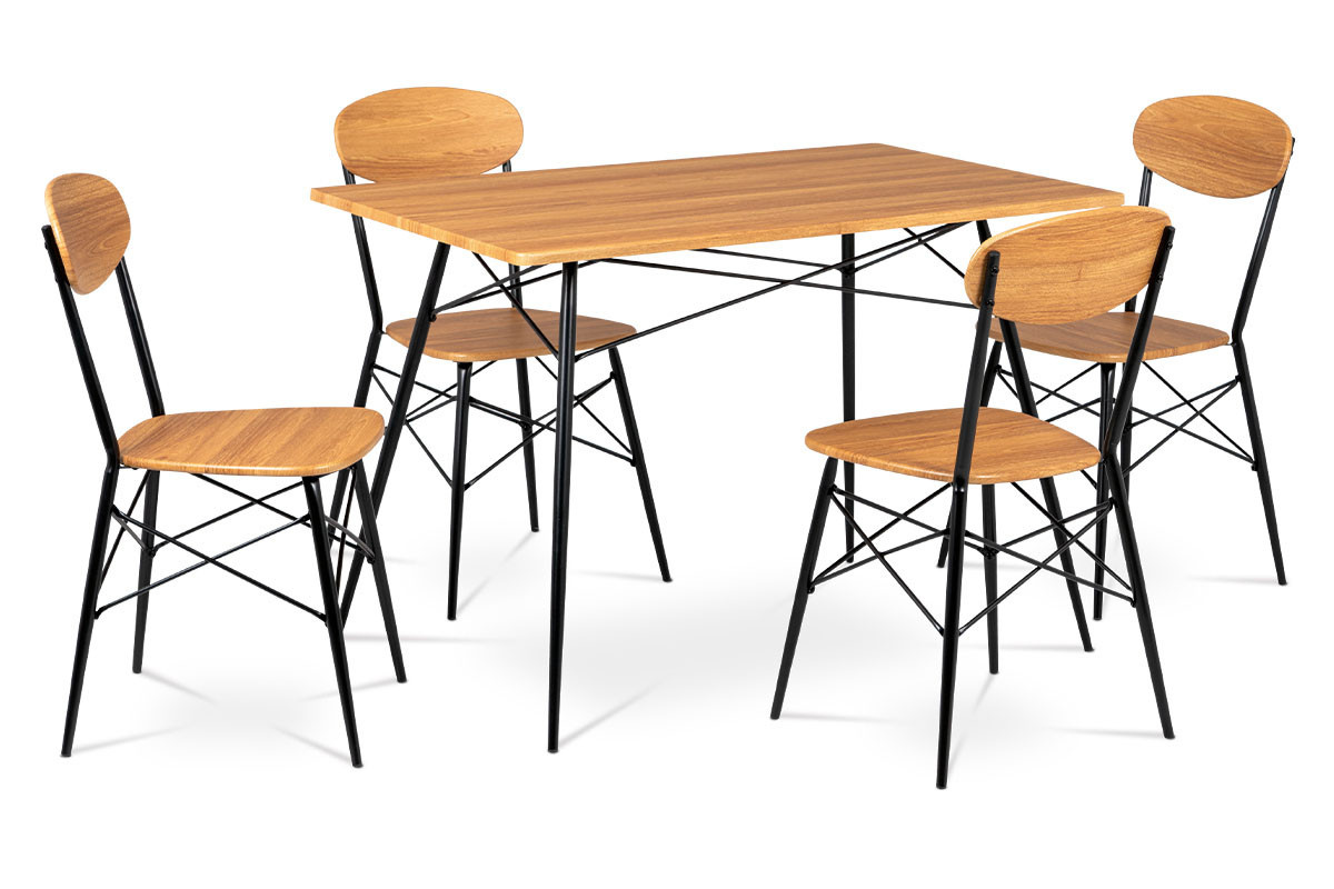 Jídelní set (1+4), MDF dekor medový dub, čtyřnohá kovová podnož, černý matný lak