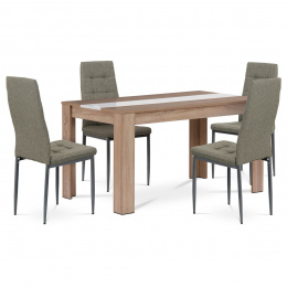 Jídelní set 1+4, stůl 138x80 cm, lamino dub sonoma, židle lanýž. látka a lak