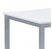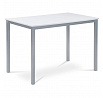 Jídelní stůl o délce 110 cm a šířce 70 cm v minimalistickém klasickém stylu. Stolní deska tl. 2 cm je z čistě bílé matné MDF obdélníkového tvaru. Nohy a konstrukce je kovových profilů čtvercového průřezu. Nohy jsou ve spodní části opatřeny plastovými záslepkami s kluzáky, zabraňující poškození podlahové krytiny. Povrchová úprava je práškovou vypalovací barvou ve stříbrnošedém odstínu.Výška stolu je 75 cm. Stůl se hodí do menších a střídně zařízených kuchyní i jídelen, svým neutrálním designem najde úspěšné uplatnění i v jiných prostorách. Dále je ho možné použít i jako psací či pracovní na lehčí činnosti, vzhledem k jeho subtilnosti. Vhodné židle jsou nejen se stejně barevnou podnoží, ale nebojte se experimentovat i se dřevem či plastem. Ke stolu je možné umístit 4 židle.