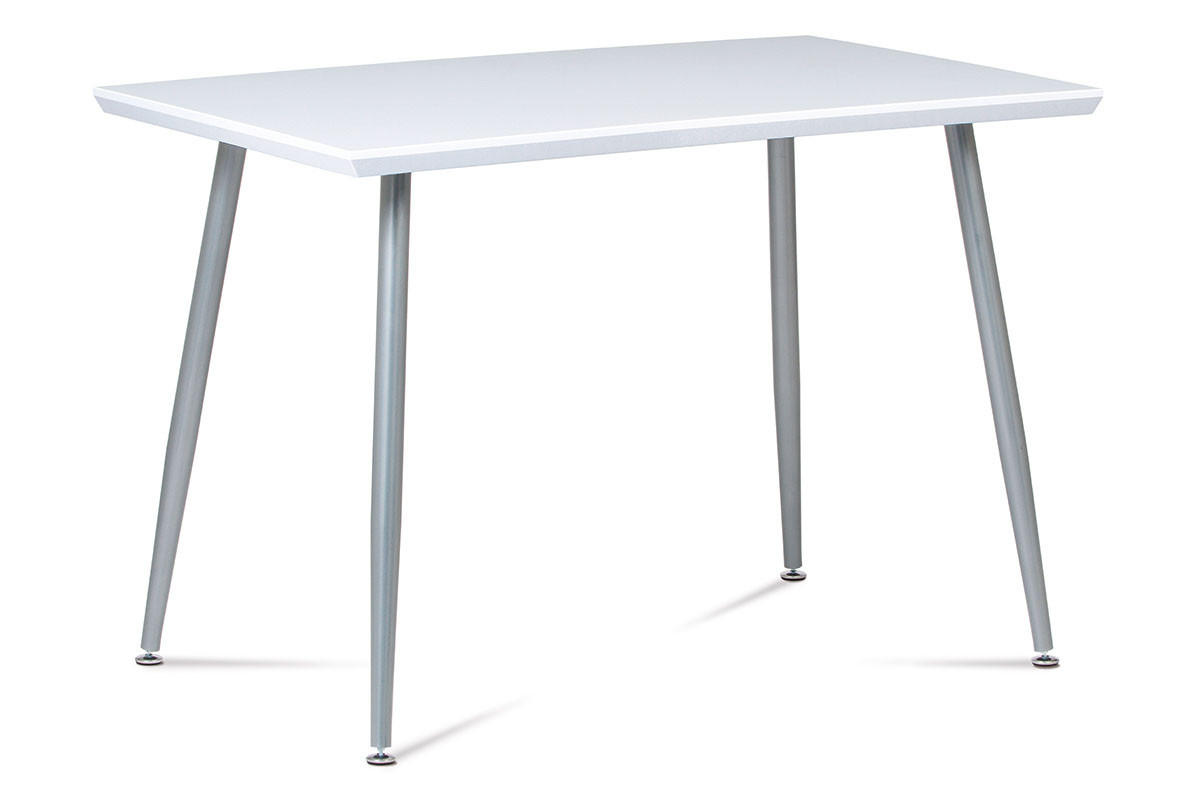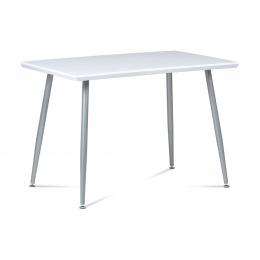 Moderní jídelní stůl v rozměru 110x70 cm, konstrukce je lakována šedým lakem, deska stolu je v bílém lesku. Tloušťka desky je 4 cm. K tomuto stolu doporučujeme výběr židlí také s konstrukcí lakovanou na šedo, např. DCL-102 BK / GREY / WT, aj.