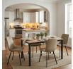 Jídelní stůl o rozměrech 110x70x75 cm kombinuje desku z MDF s dekorem divokého dubu a stabilní kovovou podnož v černém matném laku. Deska je navržena pro snadnou údržbu a odolnost vůči běžnému opotřebení, což zajišťuje dlouhodobou životnost. Kovová podnož poskytuje pevnou a stabilní oporu, která udržuje stůl bezpečně na místě během používání. Moderní design s přírodními odstíny dřeva se hodí do různých interiérů, od jídelny po pracovní kout. Stůl není rozkládací, což podtrhuje jeho kompaktní a praktické provedení.