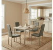 Jídelní stůl o rozměrech 110 × 70 × 75 cm kombinuje desku z MDF s dekorativním povrchem v odstínu travertinu a stabilní kovovou podnož v lakovaném cashmere provedení. Deska je opatřena matnou povrchovou úpravou, která usnadňuje údržbu a odolává běžnému opotřebení. Kovová podnož zajišťuje pevnost a stabilitu celé konstrukce, což přispívá k dlouhé životnosti stolu. Design s čistými liniemi a přírodními odstíny travertinu vytváří univerzální řešení vhodné do moderních i klasických interiérů. Stůl není rozkládací a nabízí pevnou pracovní nebo jídelní plochu s nosností odpovídající běžnému domácímu použití.