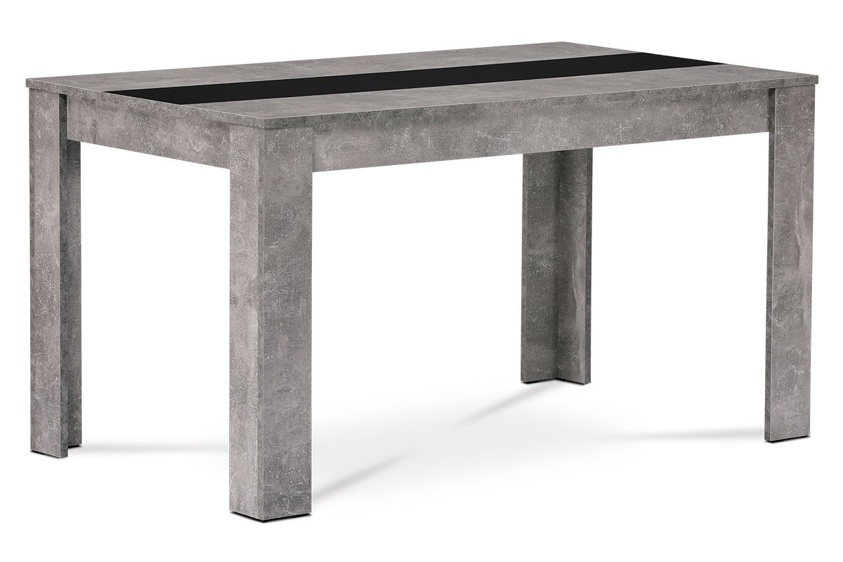 Jídelní stůl 138x80x74 cm, MDF, lamino dekor beton, dekorační pruh v černé a bíl