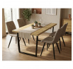 Jídelní stůl o rozměrech 160x80x76 cm kombinuje desku z hnědého lamina s dekorem dubu a stabilní kovovou podnož v černém matném provedení. Deska je opatřena ABS hranou, která chrání okraje před poškozením a usnadňuje údržbu, zatímco matný povrch zajišťuje příjemný vzhled bez lesku. Pevná kovová podnož poskytuje vysokou stabilitu a nosnost, což umožňuje pohodlné využití v jídelních prostorách. Materiál desky je navržen pro snadnou údržbu a odolnost vůči běžnému opotřebení, což přispívá k dlouhé životnosti stolu. Tento model je ideální volbou pro moderní interiéry, kde se klade důraz na funkčnost a jednoduchý design.