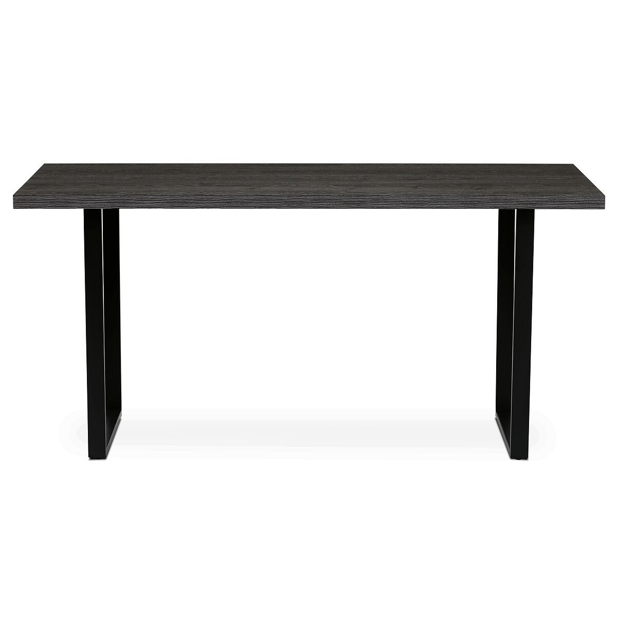 Jídelní stůl o rozměrech 160x80x76 cm kombinuje desku z lamina s dekorem šedého dubu a pevnou kovovou podnož v černém matném provedení. Deska je opatřena ABS hranou, která chrání okraje proti poškození a usnadňuje údržbu. Stabilní kovová konstrukce podnože zajišťuje pevnost a dlouhou životnost stolu, přičemž materiály jsou navrženy tak, aby odolávaly běžnému opotřebení a snadno se udržovaly v čistotě. Díky svým rozměrům a neutrálnímu designu je vhodný pro různé typy interiérů, kde poskytuje dostatek prostoru pro pohodlné stolování.