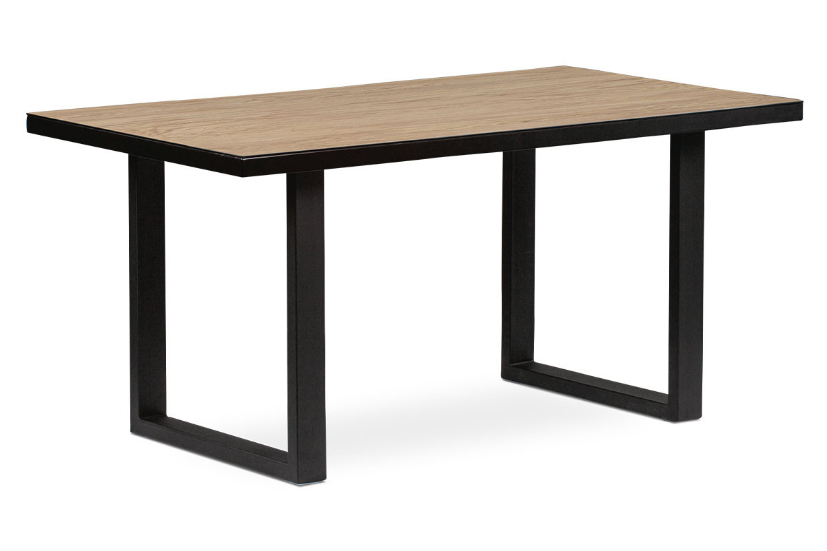 Jídelní stůl 160x90x76, keramické sklo 5 mm v dekoru dub + MDF, kovové nohy, černý matný lak