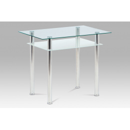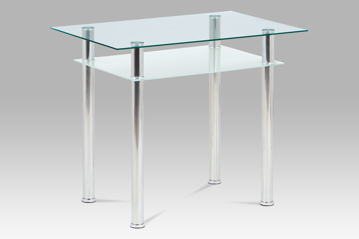 Jídelní stůl 90x60 cm, číré/mléčné sklo temperované + chrom