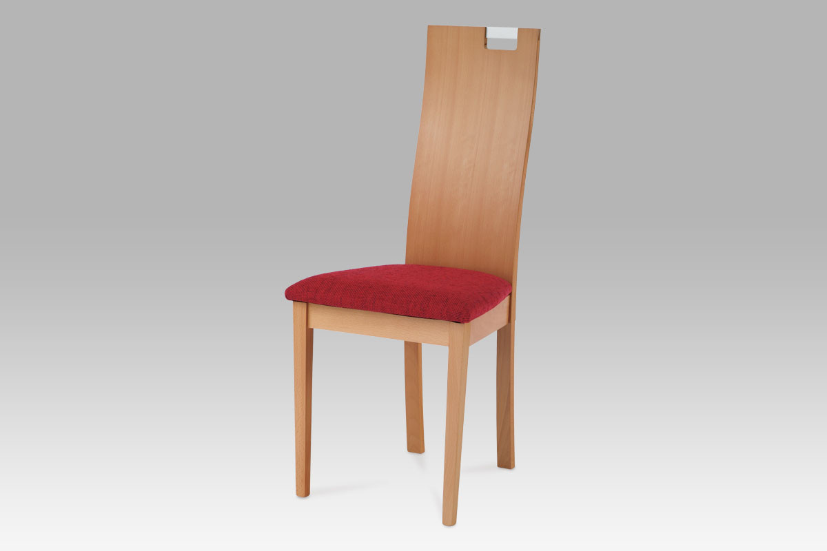 - Dřevěná jídelní židle je vyrobena z bukového masivu, mořena na odstín tmavý buk a lakována transparentním lakem. Potah sedáku je volitelný z pěti vzorníků látek a jednoho vzorníku ekokůží. V horní části opěráku je kovové madlo ve stříbrném odstínu. Provedení židle je v minimalistickém designu. - Masivní dřevo je přírodní materiál. Zhruba po 14ti dnech po smontování šrouby dotáhněte. Zvýšíte tím stabilitu a pevnost konstrukce. Pokud je potřeba, dotahujte šrouby průběžně, aby byl výrobek stále kvalitní. - Dřevo otírejte jemným čistícím prostředkem, osušte čistou utěrkou. Skvrny na potahu odstraňte čistícím prostředkem na textil /ekokůži.