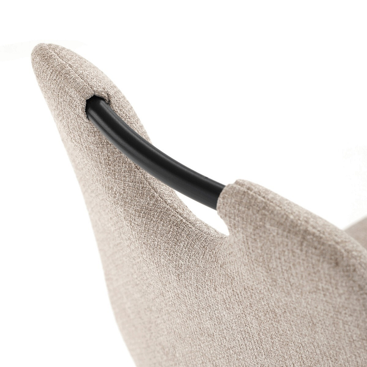 Jídelní židle s označením DCL-V2017 CRM2 nabízí kombinaci pohodlí a praktičnosti v moderním designu. Sedák a opěradlo jsou potažené béžovou látkou, která je snadno udržovatelná a doplněná designovým prošitím pro zvýraznění estetického dojmu. Pevné kovové nohy s matnou černou povrchovou úpravou zajišťují stabilitu a dlouhou životnost. Praktickým prvkem je madlo v horní části opěradla, které usnadňuje manipulaci a přenášení židle. Židle nemá područky ani otočný mechanismus, což ji činí kompaktní a vhodnou do různých interiérů.