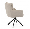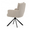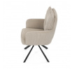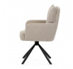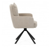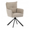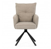 Jídelní židle HC-X1128 LAN2 od značky Autronic nabízí komfortní sezení díky vysokému polstrování sedáku a opěradla potaženému lanýžovou látkou manšestr v béžovém odstínu. Sedák je vybaven taštičkovými pružinami, které zvyšují pohodlí a přizpůsobivost při sezení. Židle disponuje otočnou funkcí s vratným mechanismem umožňujícím otáčení o 180°, což usnadňuje pohyb a přístup k jídelnímu stolu. Područky jsou součástí čalouněné části, která je pevně spojena s kovovou podnoží v černém matném provedení, jež zajišťuje stabilitu a dlouhou životnost. Díky kombinaci kvalitních materiálů a funkčních prvků je židle vhodná pro moderní jídelní prostory s důrazem na pohodlí i design.