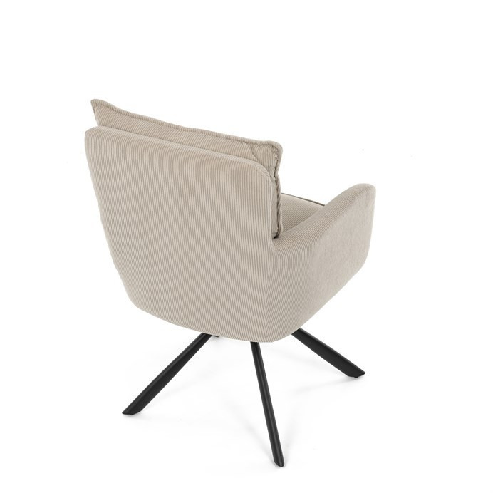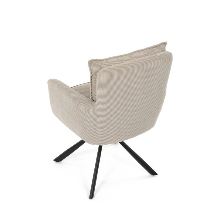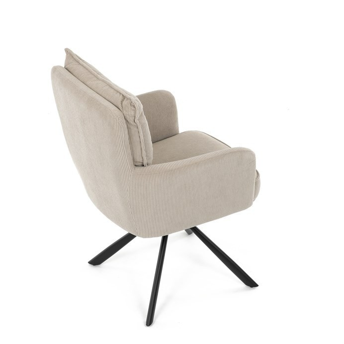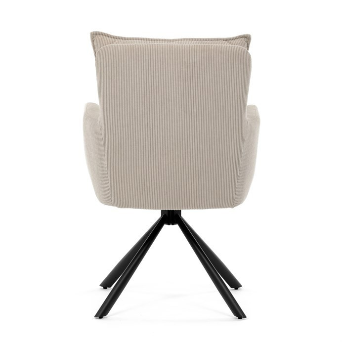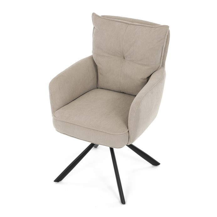 Jídelní židle HC-X1128 LAN2 od značky Autronic nabízí komfortní sezení díky vysokému polstrování sedáku a opěradla potaženému lanýžovou látkou manšestr v béžovém odstínu. Sedák je vybaven taštičkovými pružinami, které zvyšují pohodlí a přizpůsobivost při sezení. Židle disponuje otočnou funkcí s vratným mechanismem umožňujícím otáčení o 180°, což usnadňuje pohyb a přístup k jídelnímu stolu. Područky jsou součástí čalouněné části, která je pevně spojena s kovovou podnoží v černém matném provedení, jež zajišťuje stabilitu a dlouhou životnost. Díky kombinaci kvalitních materiálů a funkčních prvků je židle vhodná pro moderní jídelní prostory s důrazem na pohodlí i design.