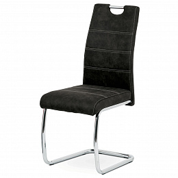 Jídelní židle s označením HC-483 BK3 nabízí kombinaci pohodlí a moderního designu v černém látkovém potahu s efektem vintage kůže. Sedák i opěradlo jsou čalouněné kvalitní látkou, která je příjemná na dotek a snadno se udržuje. Kovová pohupová podnož zajišťuje mírný pohyb při sezení, což přispívá k většímu komfortu během stolování. Židle nemá područky ani možnost výškového nastavení, což ji činí kompaktní a vhodnou do různých interiérů. Stabilní kovová konstrukce je navržena pro dlouhou životnost a podporuje bezpečnou nosnost pro běžné užívání.