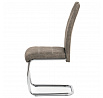 Jídelní židle s označením HC-483 BR3 nabízí potah z hnědé látky v dekoru vintage kůže, která kombinuje estetiku tradičního vzhledu s praktičností textilního materiálu. Pevná chromovaná kovová podnož je navržena v pohupovém provedení, které přispívá k příjemnému sezení a mírnému odpružení. Sedák i opěradlo jsou ergonomicky tvarované a čalouněné pro komfort během delšího posezení. Židle nemá područky ani možnost výškového nastavení, což ji činí vhodnou především pro jídelní prostory s omezeným prostorem. Stabilní kovová konstrukce zajišťuje nosnost odpovídající běžnému užívání v domácnostech i komerčních provozech.