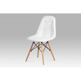 Jídelní židle s nadčasovým vzhledem, je nejen pohodlná, ale také skvělým designovým doplňkem do jídelny, kuchyně či pracovny. Zajímavě řešená podnož z lakovaného masivního bukového dřeva v přírodním odstínu s černými kovovými výztuhami, sedák s opěrákem je očalouněn bílou koženkou.