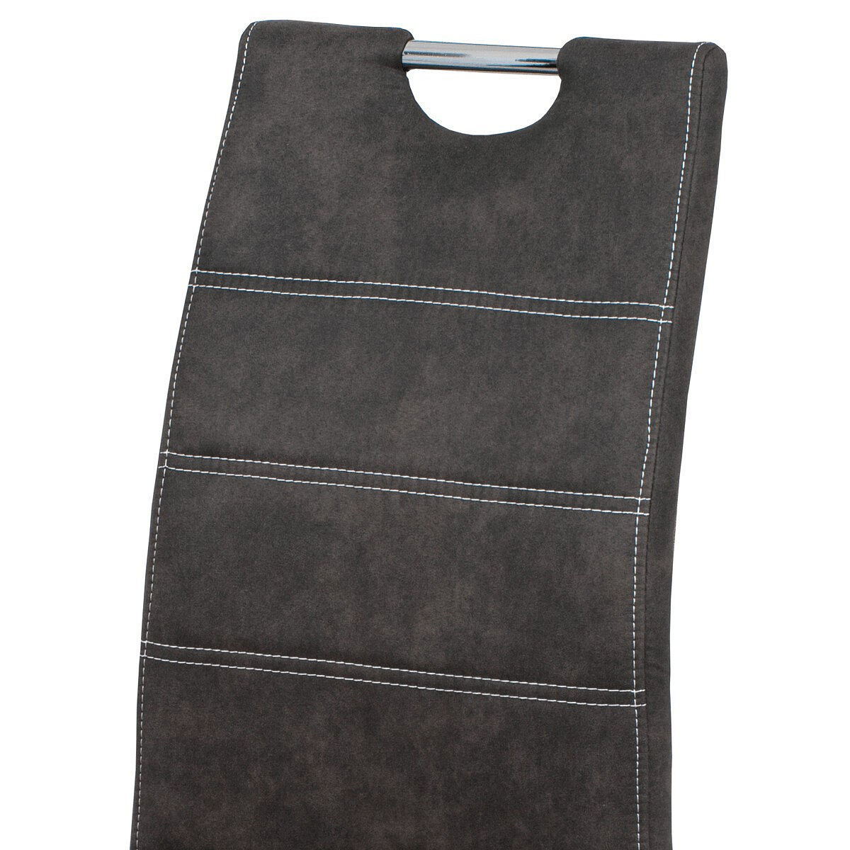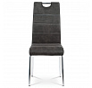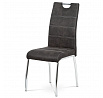 Jídelní židle s označením HC-486 GREY3 nabízí kombinaci moderního designu a praktických detailů. Potah je vyroben z šedé látky v dekoru vintage kůže, doplněný kontrastním bílým prošitím, které zvýrazňuje její elegantní vzhled. Pevná kovová podnož s lesklým chromovým povrchem zajišťuje stabilitu a dlouhou životnost. Opěradlo je ergonomicky tvarované a vybavené madlem pro snadnější manipulaci a přenášení židle. Židle nemá područky ani výškové nastavení, což podporuje její univerzální využití v jídelních prostorách.
