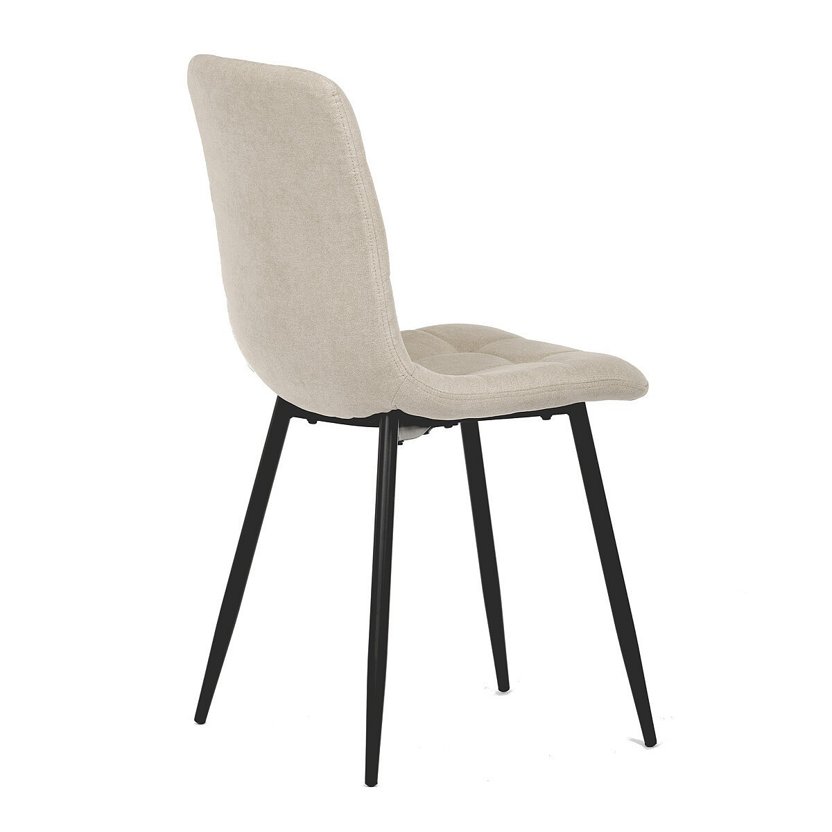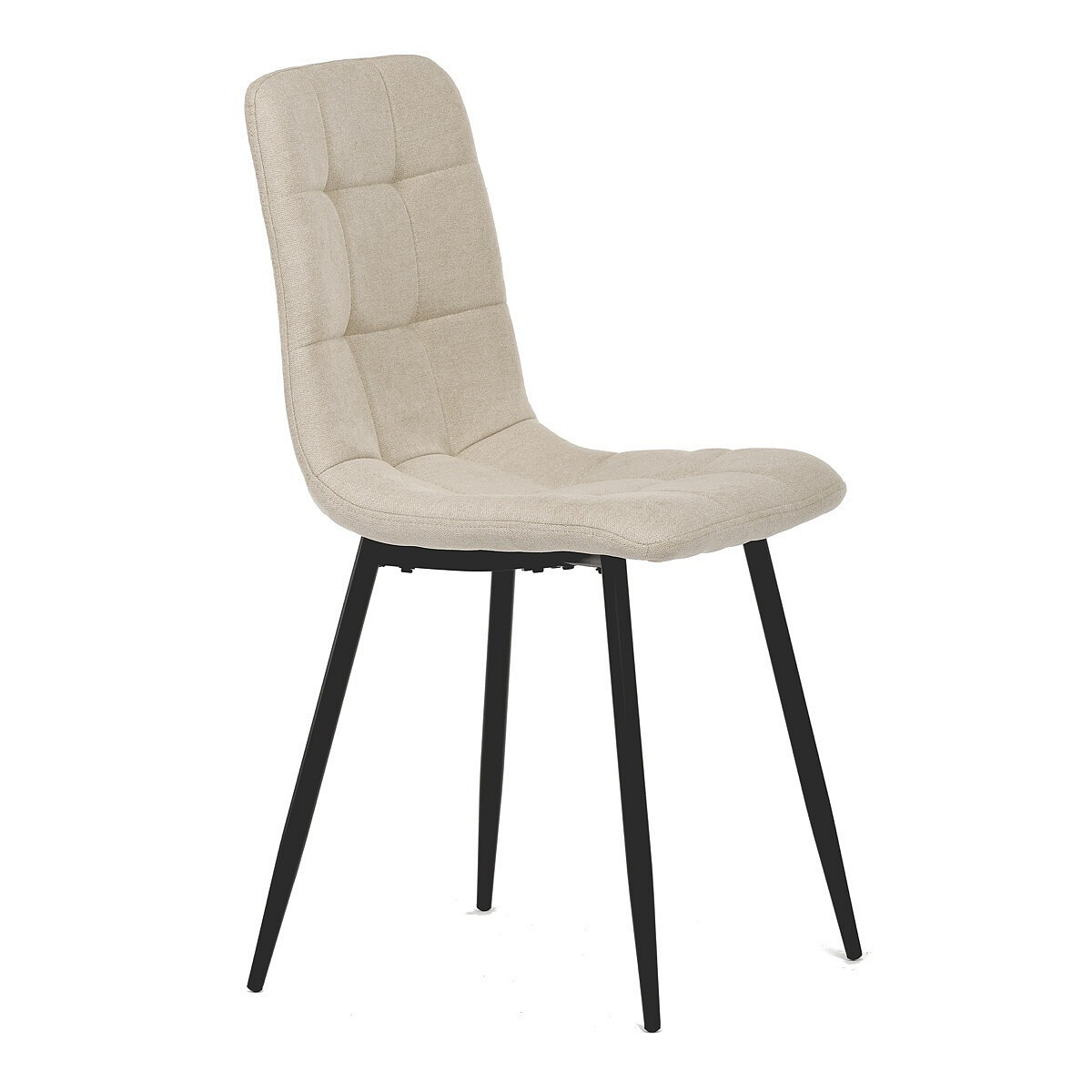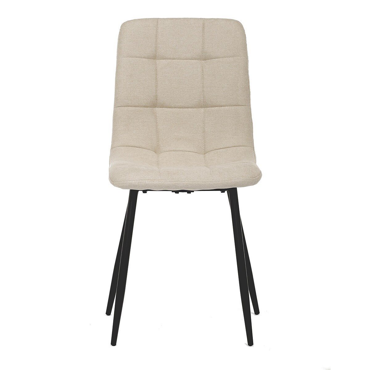 Jídelní židle v industriálním stylu. Potah je z hladké látky v krémové barvě. Výrazné je čtvercové prošití čelních ploch sedáku i opěradla. Polstrování je z kvalitní PU pěny. Stabilitu židle zajišťují čtyři kónické kovové nohy s kvalitním práškovým nástřikem v černé matné barvě. Ukončené jsou černými plastovými kluzáky, zabraňujícími poškození tvrdých povrchů podlah. Nohy jsou kruhového průřezu o nejvyšším průměru 3 cm. Tento minimalistický design jídelních židlí je velmi oblíben pro svoji nadčasovost i pohodlí, které poskytuje. Můžete ji bez obav použít k široké škále stolů v různých materiálech i provedeních.
