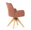 Stylová jídelní židle značky Autronic v moderním designu, která kombinuje komfort a eleganci. Její pohodlný sedák i opěrák jsou čalouněny voděodolnou látkou v příjemném oranžovém odstínu, což z ní činí skvělý doplněk do jakéhokoliv interiéru. Masivní dřevěné nohy v přírodní barvě dodávají židli stabilitu a odolnost, zatímco otočný mechanismus s funkcí 360° přináší uživatelský komfort. Tato jídelní židle je ideální nejen do domácností, ale také do kaváren či restaurací, kde je požadován moderní a funkční nábytek.