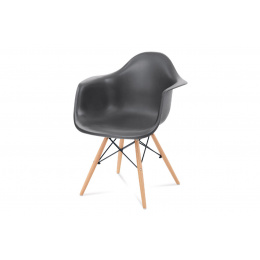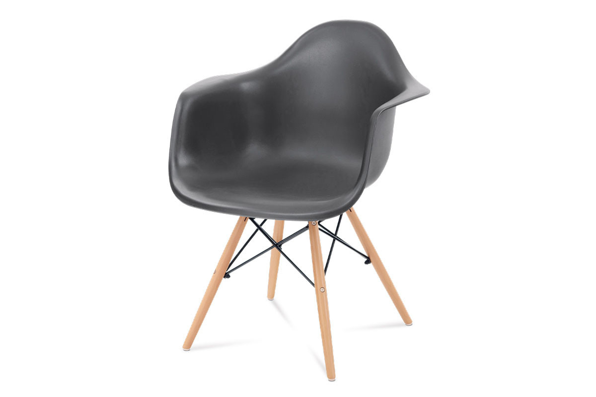 Designová židle s nadčasovým vzhledem a severským stylem je nejen pohodlná, ale také skvělým designovým doplňkem do jídelny, kuchyně či pracovny. I jako solitér má své platné místo v interiérech. Zajímavě je řešená podnož z masivního bukového dřeva v přírodním odstínu s černými kovovými výztuhami. Šedý sedák je plastový, ergonomicky tvarovaný a s pohodlnými opěrkami na ruce. Nosnost židle je 110 kg.