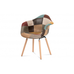 Jídelní židle, vícebarevná látka patchwork, masiv buk, kov černý