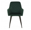 Jídelní židle s označením DCH-215 GRN4 nabízí pohodlné sezení díky čalounění z kvalitní zelené sametové látky, která je příjemná na dotek a snadno se udržuje. Opěradlo i sedák jsou doplněny designovým prošitím v kosočtverečném vzoru, které podtrhuje moderní vzhled židle. Pevné černé kovové nohy zajišťují stabilitu a dlouhou životnost, zatímco integrované područky přispívají k vyššímu komfortu při sezení. Židle je určena pro použití v jídelnách, kuchyních či kavárnách, kde kombinuje estetiku s funkčností.