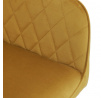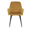 Jídelní židle s označením DCH-215 YEL4 nabízí pohodlné sezení díky čalounění z měkké žluté sametové látky, která je doplněna designovým prošitím v kosočtverečném vzoru na opěradle a područkách. Pevné kovové nohy v černém matném provedení zajišťují stabilitu a dlouhou životnost židle. Ergonomicky tvarované opěradlo s integrovanými područkami podporuje správné držení těla během stolování. Sametová látka je příjemná na dotek a snadno se udržuje, což přispívá k praktickému využití v domácnostech i komerčních prostorách. Židle není otočná, její jednoduchý a zároveň stylový design ji předurčuje k využití v moderních interiérech.