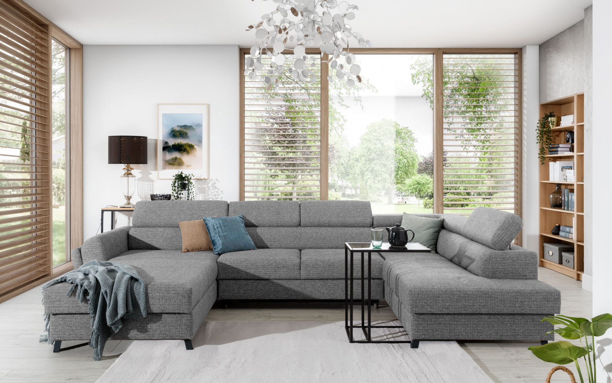 Josette je multifunkční, pohodlná a prostorná rohová pohovka ve tvaru U, která může být luxusním zakončením prostorného obývacího pokoje. Toto je vysoce kvalitní kus nábytku, synonymum pohodlí a elegance v její čisté podobě. To vše díky širokému sedáku s hloubkou 55 cm a pevnému výplni s vlnitou pružinou spolu s pěnou T30 + HR, které poskytují efekt výjimečné pružnosti, měkkosti a zároveň se starají o správnou polohu našeho těla při používání nábytku. Za Josette, která měří 370 x 190 x 98 cm, se neskrývá jen pohodlí způsobené prostorným místem k odpočinku, ale také dobře prospané noci. Toto je zde také splněno mechanismem delfín, který intuitivním a bezproblémovým způsobem rozkládá nábytek do požadované polohy, díky čemuž se pohovka promění v postel o rozměrech 110 x 300 cm. Naše rohová pohovka je také vybavena praktickým a prostorným úložným prostorem na lůžkoviny. Mezi vlastnosti tohoto modelu můžeme zahrnout nastavitelné opěrky hlavy, široké a pohodlné sedadlo, stejně jako elegantní nohy vyrobené z kovu a dřeva. Pokud jste zvědaví, čím dalším vás může Josette překvapit - zveme vás k zakoupení naší rohové pohovky.