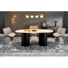 JULIUS oválný stůl, deska - světlý travertin, nohy - černé (3p=1ks)