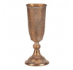 Úzký kovový kalich z naší přepychové kolekce dekoračního zboží, vám přináší noblesu a eleganci přímo na váš stůl. Zlatá barva a starožitný vzhled povýší vaše každodenní stolování na královskou úroveň. S tímto unikátním artiklem, který věrně připomíná cenný předmět s historickou hodnotou, se budete cítit jako host na královském dvoře, zářící luxusem. Přiveďte si do svého interiéru unikátní ozdobný prvek a proměňte běžné stolování v nezapomenutelnou událost plné romantiky a elegance.