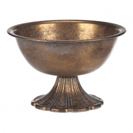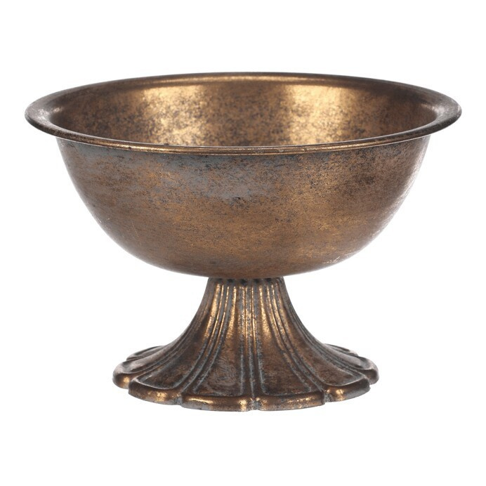 Široký kovový kalich s ozdobnou nohou, z naší přepychové kolekce dekoračního zboží, vám přináší noblesu a eleganci přímo na váš stůl. Zlatá barva a starožitný vzhled povýší vaše každodenní stolování na královskou úroveň. S tímto unikátním artiklem, který věrně připomíná cenný předmět s historickou hodnotou, se budete cítit jako host na královském dvoře, zářící luxusem. Přiveďte si do svého interiéru unikátní ozdobný prvek a proměňte běžné stolování v přepychovou událost plnou romantiky a elegance, na kterou jen tak nezapomenete. Pozor! Tento výrobek je určen výhradně pro aranžovací a dekorativní účely a není vhodný pro styk s potravinami!