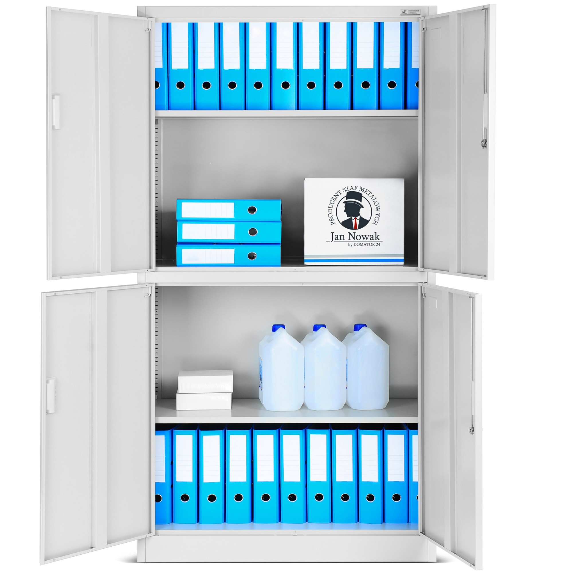 Šedá kancelářská skříň model MAGDA – kovová, 90 cm, na šanony, dokumenty, do úřadu, do kanceláře, do pracovny, MAGDA – kancelářská ocelová skříň Spolehlivá kovová skříň MAGDA je nezbytným prvkem každé efektivně fungující kanceláře nebo dílny. Dvě samostatné sekce pro ukládání umožňují segregaci obsahu a činí každodenní práci ještě pohodlnější. Díky jednoduchosti a pohodlí při používání je ocelová skříň MAGDA ideálním řešením pro každého, kdo si cení praktických a kompaktních řešení. Šatní skříň MAGDA má mnoho využití • vhodná do kanceláře nebo pracovny, osvědčí se při ukládání šanonů, dokumentů a spisů • úspěšně pojme také různé druhy příslušenství, nářadí nebo pracovní oděvy • navržena s ohledem na sekretariáty, pracovny, úřady, školy nebo firmy • osvědčí se také v dílnách, šatnách a sociálních místnostech. Spolehlivá kovová skříň MAGDA – nezbytná ve vaší kanceláři Díky ocelové skříni MAGDA se každodenní práce ve vaší kanceláři nebo dílně stane příjemnou a efektivní. Dvě sekce pro ukládání umožňují podle potřeby kategorizovat dokumenty nebo je oddělit od jiných předmětů. Stabilní konstrukce a vysoká nosnost každé ze čtyř polic zaručují mnoho let používání, i při intenzivním provozu. Skříň je vyrobena z vysoce kvalitní práškově lakované oceli o tloušťce 0,6 mm. Každá z sekcí kovové skříně MAGDA je uzamykatelná zámkem, což zaručuje plnou bezpečnost a umožňuje ukládání dokumentů obsahujících osobní údaje v souladu s platnými předpisy GDPR z roku 2018.Naše kovová skříň byla vybavena otvory na zadní a boční stěně, které umožňují její připevnění ke zdi. Zvýší to bezpečnost každodenního používání. Otvor v horní části skříně umožňuje připevnit nástavec.• POJEMNÁ pojme přibližně 48 šanonů • ODOLNÁ nosnost každé police až do 50 kg • FUNKČNÍ dvě sekce úložného prostoru umožňují kategorizaci dokumentů nebo jejich oddělení od příslušenství či osobních předmětů • BEZPEČNÁ silný, uzamykatelný zámek s náhradním klíčem v sadě • TRVANLIVÁ vyrobena z tlusté oceli nejvyšší kvality, odolná proti mechanickému poškození • UNIVERZÁLNÍ klasická a elegantní, hodí se do každého interiéru Kovová skříň MAGDA – technické údaje • výška: 185 cm • šířka: 90 cm • hloubka: 40 cm • hmotnost (včetně balení): 42 kg • barva: šedá RAL 7035 Ještě více důvodů k spokojenosti: • Záruka kvality • Ukládání dokumentů v souladu s předpisy GDPR 2018 • Má certifikát PZH Stojí za to vědět: • Jednoduchá, rychlá, samostatná montáž (srozumitelný návod v sadě) Kancelářský nábytek Poznejte kancelářský nábytek z kolekce – jednoho z největších distributorů kovových skříní v celé Evropě.