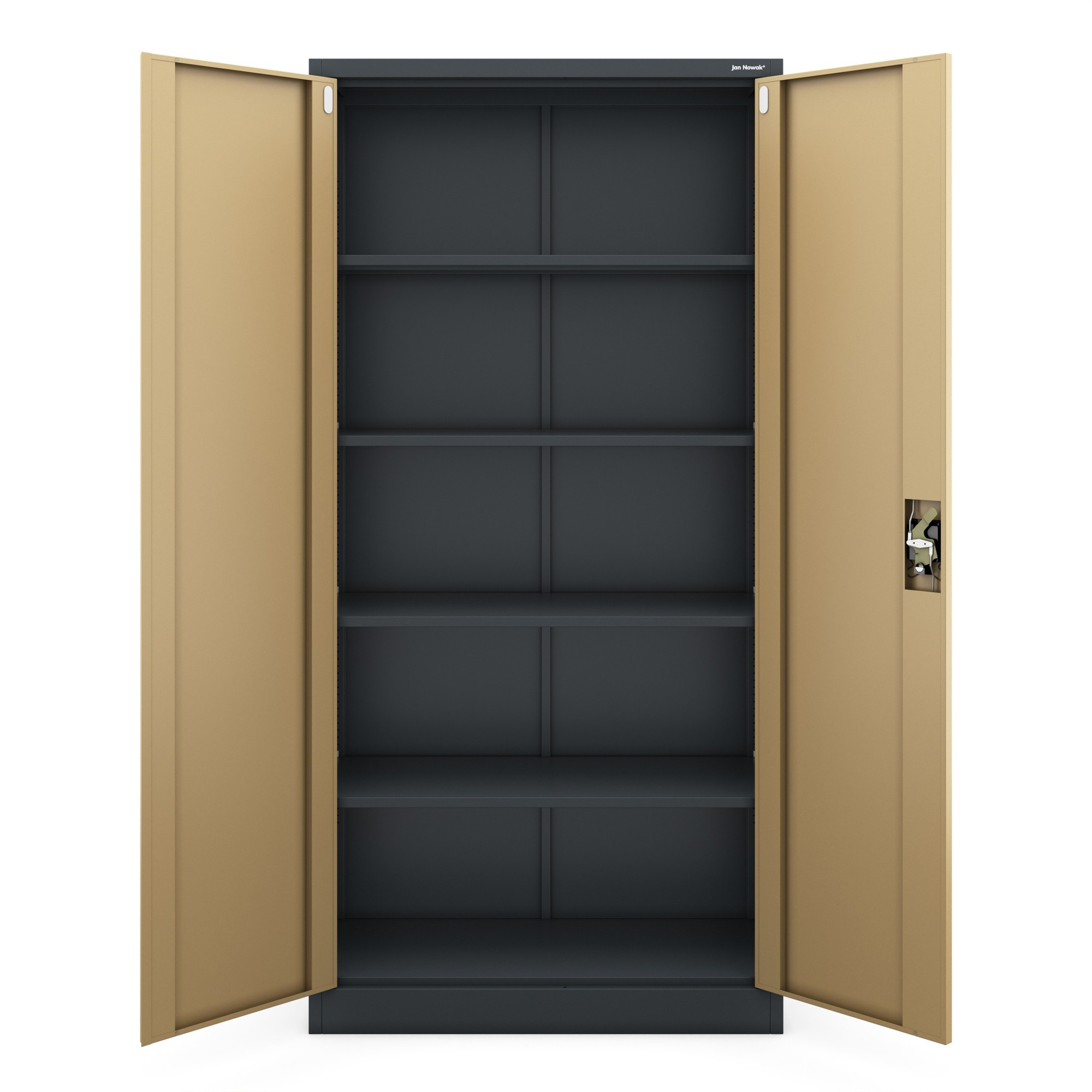 Kancelářská kovová skříň JAN, 900 x 1850 x 400 mm, Eco Design: antracitová/ořech
