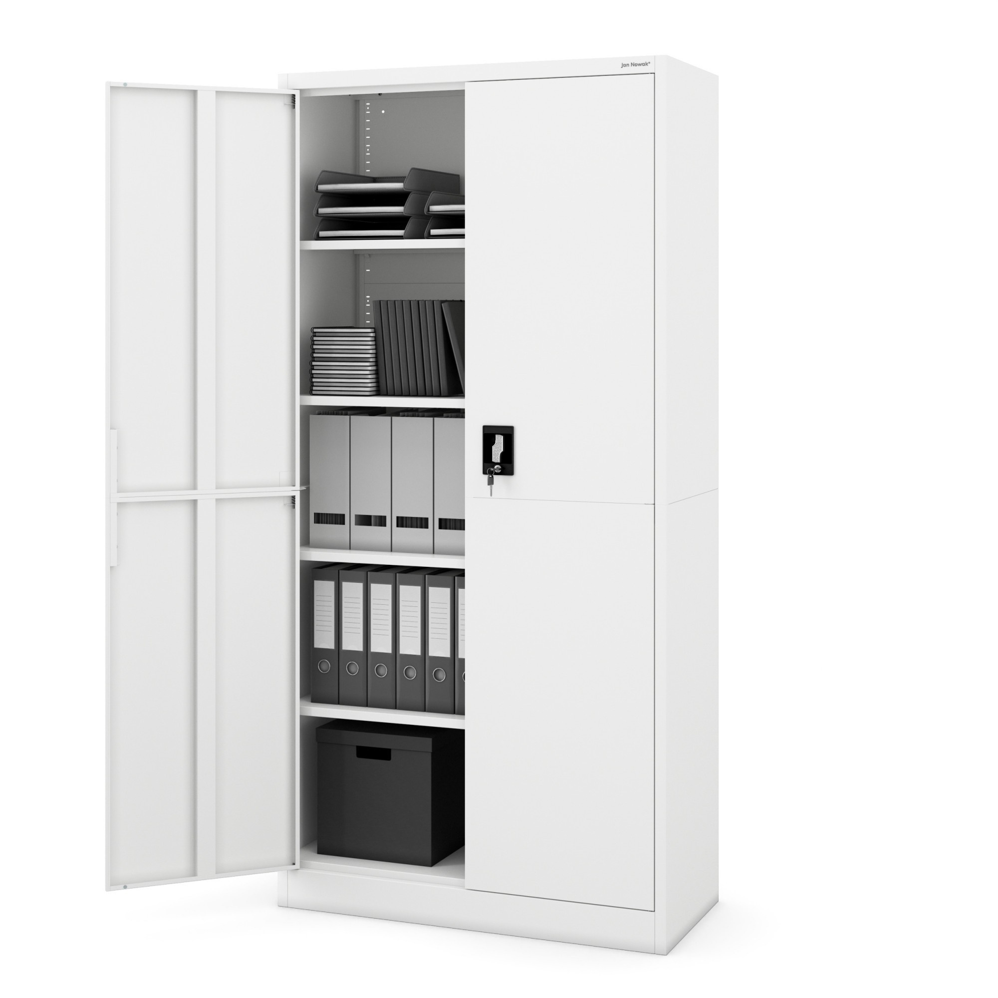 Kancelářská kovová skříň JAN, 900 x 1850 x 400 mm, Smart: bílá