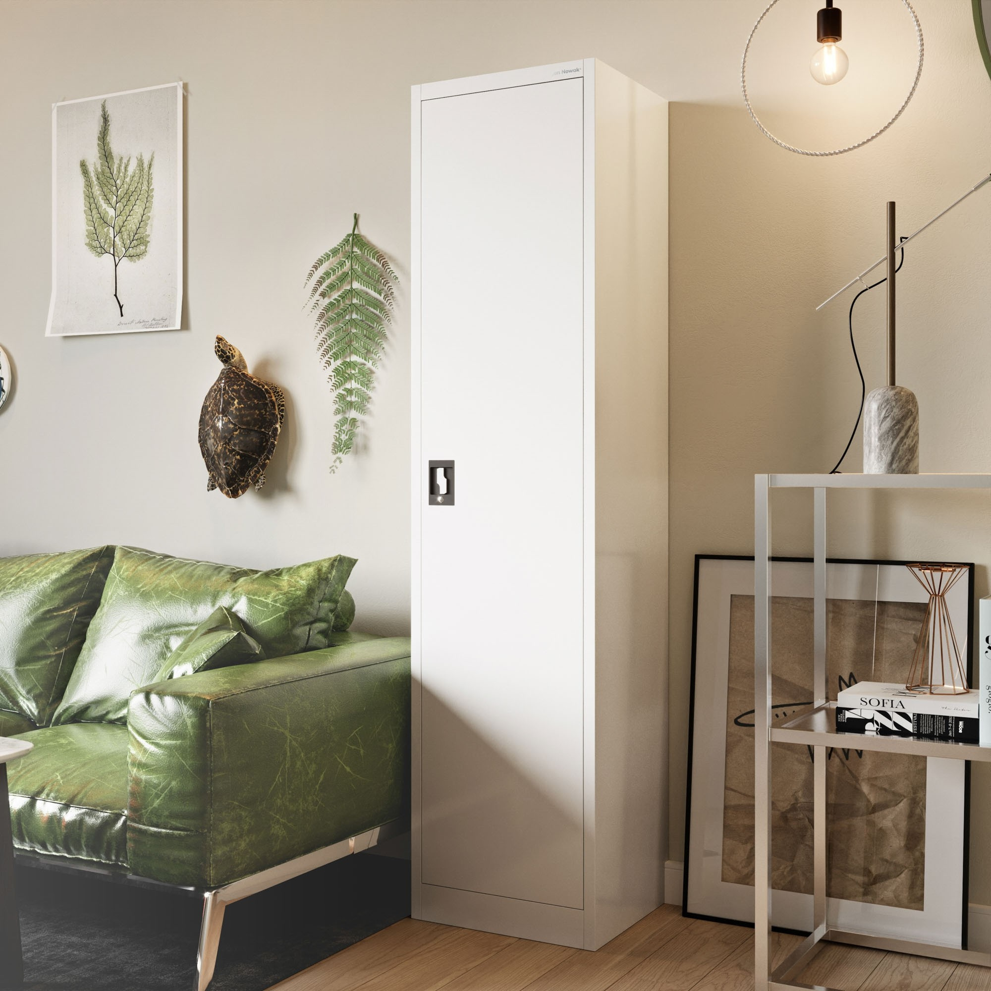Kovová jednodveřová skříň s policemi ALEX, 450 x 1850 x 400 mm, bílá Jednodveřová skříň s policemi ALEX usnadní ukládání předmětů i v nejmenší místnosti. Je zároveň úzká a vysoká, proto do jejího interiéru umístíte vše, co potřebujete pro pohodlnou práci v kanceláři, kosmetickém salonu, dílně nebo doma. 4 nastavitelné police ti umožní uspořádat předměty podle vlastních preferencí. Vyrobená z oceli o tloušťce 0,6 mm, konstrukce jednodveřové skříně ALEX vás okouzlí svou trvanlivostí a stabilitou. Pro dodatečnou ochranu jsme ji pokryli práškovým lakem, který chrání před vznikem rzi, ale také zajišťuje, že úzká skříň vypadá velmi dobře. Skříň ALEX se vejde všude I když se ti zdá, že ve tvém pokoji není možné najít prostor pro další kus nábytku, jednodveřová skříň s policemi ALEX ti dokáže, že je to jinak. Díky kompaktním rozměrům (45 cm šířky a 40 cm hloubky) se ideálně hodí i do malého prostoru a nezaplňuje úzkou místnost. Naopak díky své výšce 185 cm je mimořádně prostorná.Skříň s jedněmi dveřmi s policemi ALEX doporučujeme zejména do malých kosmetických salonů, ordinací, kancelářských prostor, úředních zařízení a také do domácí kanceláře. Skvěle poslouží jako doplňkový prvek většího nábytkového setu. Síla spočívá v detailech: Vyrobena z oceli o tloušťce 0,6 mm - konstrukce skříně je pevná a stabilní. Čtyři nastavitelné police po 25 mm - organizace předmětů ve skříni ještě nikdy nebyla tak příjemná a jednoduchá.Maximální zatížení každé police je 50 kg - silná ocelová konstrukce vám umožní ukládat šanony plné dat nebo těžké nástroje. Uzamykatelná na klíč - schováte v ní dokumenty s osobními údaji. S tříbodovým zamykacím zámkem je skladování mimořádně bezpečné.2 klíče v sadě - náhradní klíč zajišťuje dvěma osobám přístup dovnitř.Atest PZH - skříň ALEX je bezpečná pro tebe i životní prostředí. Záruka kvality - s postupem let bude jednodveřová skříň s policemi ALEX stále v dokonalém stavu. Otvor pro montáž na stěnu - vybavili jsme úzkou skříň otvory na bočních a zadních stěnách, dodatečná stabilizace zvyšuje bezpečnost používání.Bílá jednodveřová skříň s policemi Od kovového nábytku se očekává především solidní provedení, trvanlivost a odolnost vůči mechanickému poškození. Jednodveřová skříň s policemi ALEX kombinuje tyto vlastnosti s atraktivním vzhledem. Je pokryta bílou barvou, prášková metoda umožnila rovnoměrně rozložit barvivo po celém povrchu. Díky tomu vypadá mimořádně moderně a esteticky. Z tohoto důvodu ji zákazníci rádi volí jak pro veřejné, tak pro soukromé prostory. Ačkoli je jednodveřová skříň s policemi ALEX světlá, je velmi snadné ji udržovat v čistotě. V případě znečištění stačí otřít vlhkým hadříkem s trochou detergentu.Nejdůležitější informace o úzké skříni ALEX výška: 185 cm šířka: 45 cm hloubka: 40 cm hmotnost: 27 kg barva: bílá, RAL 9003 Úzkou jednodveřovou skříň ALEX zasíláme v částech spolu s návodem. Abychom vám usnadnili její sestavení, připravili jsme video materiál, který přesně ukazuje způsob montáže.