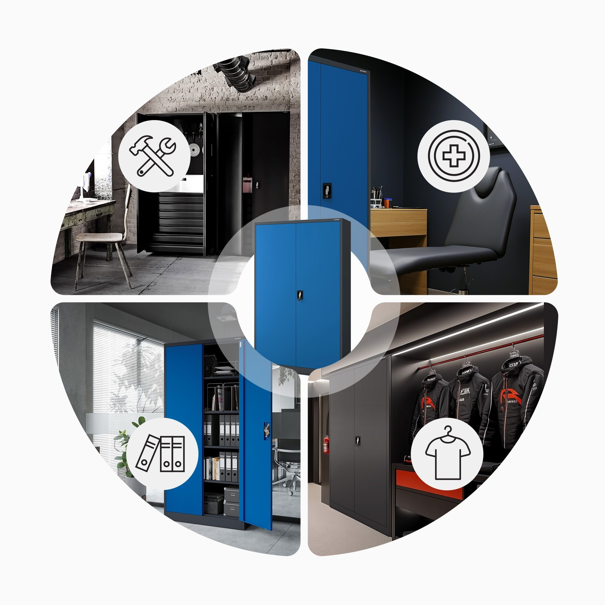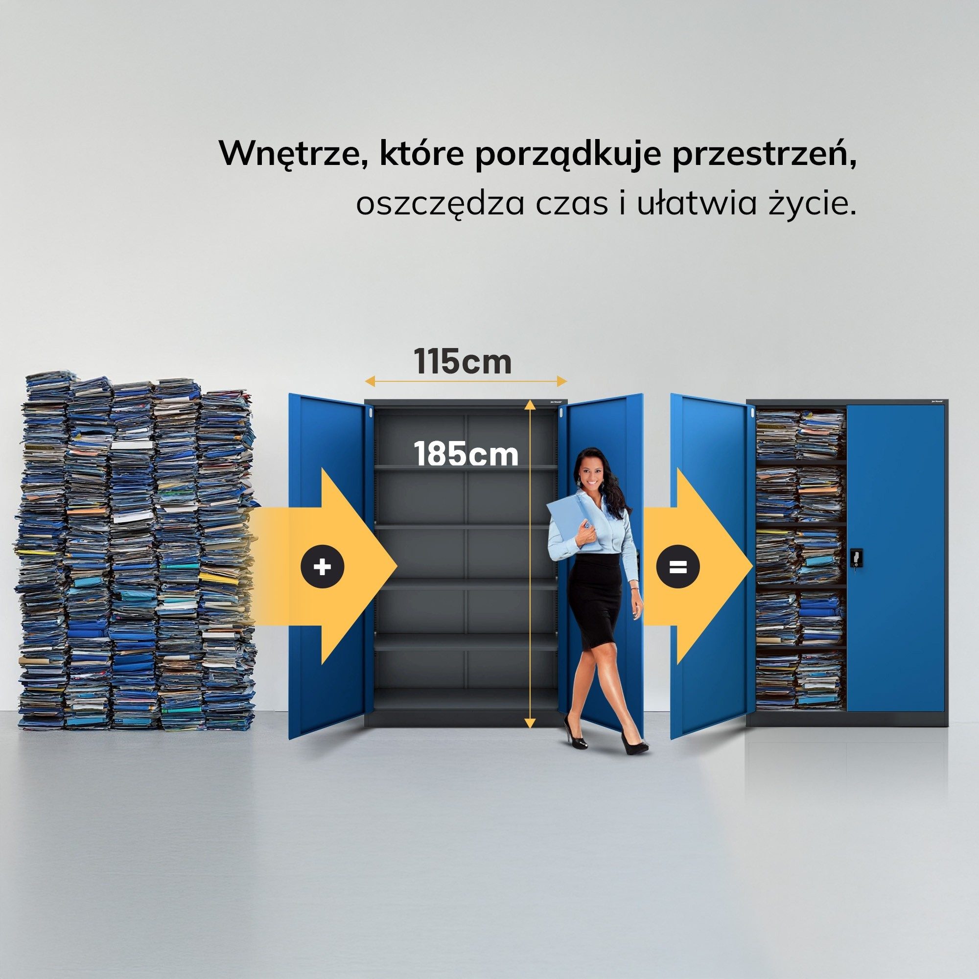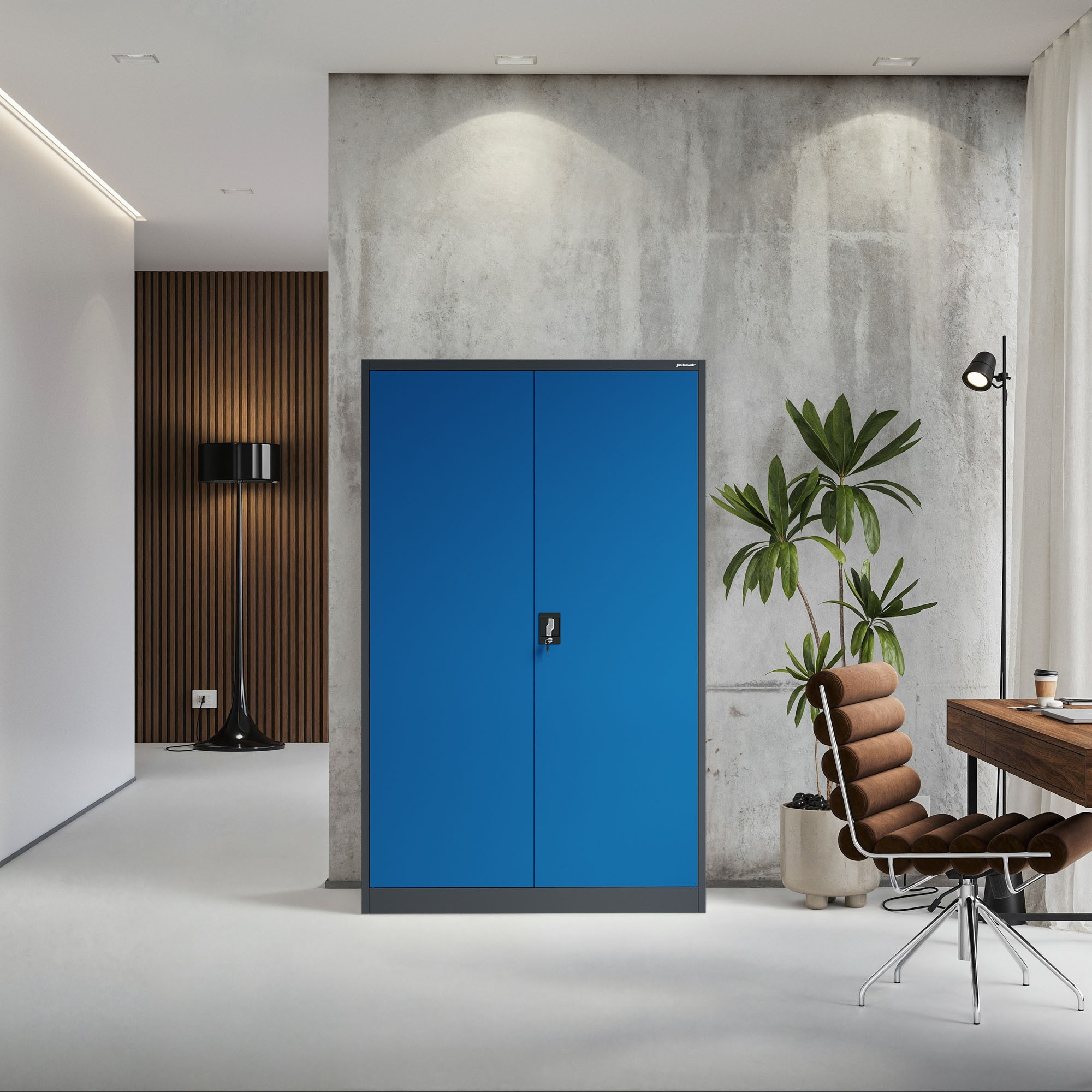 Kancelářská kovová skříň na dokumenty antracitově-modrá JAN II, 1150 x 1850 x 400 mm