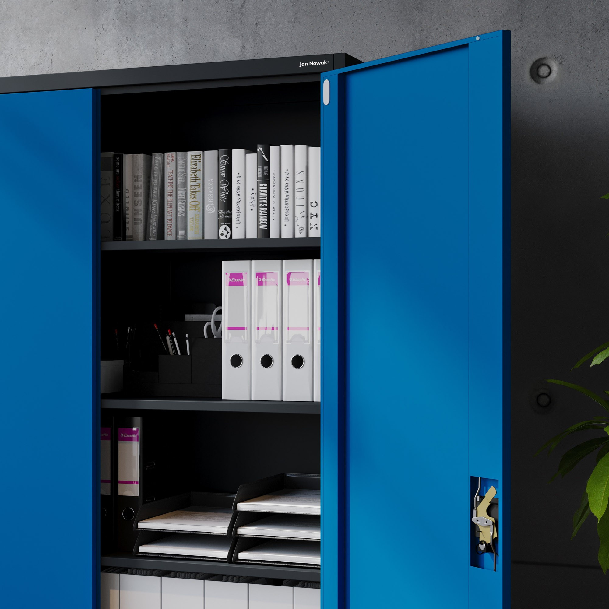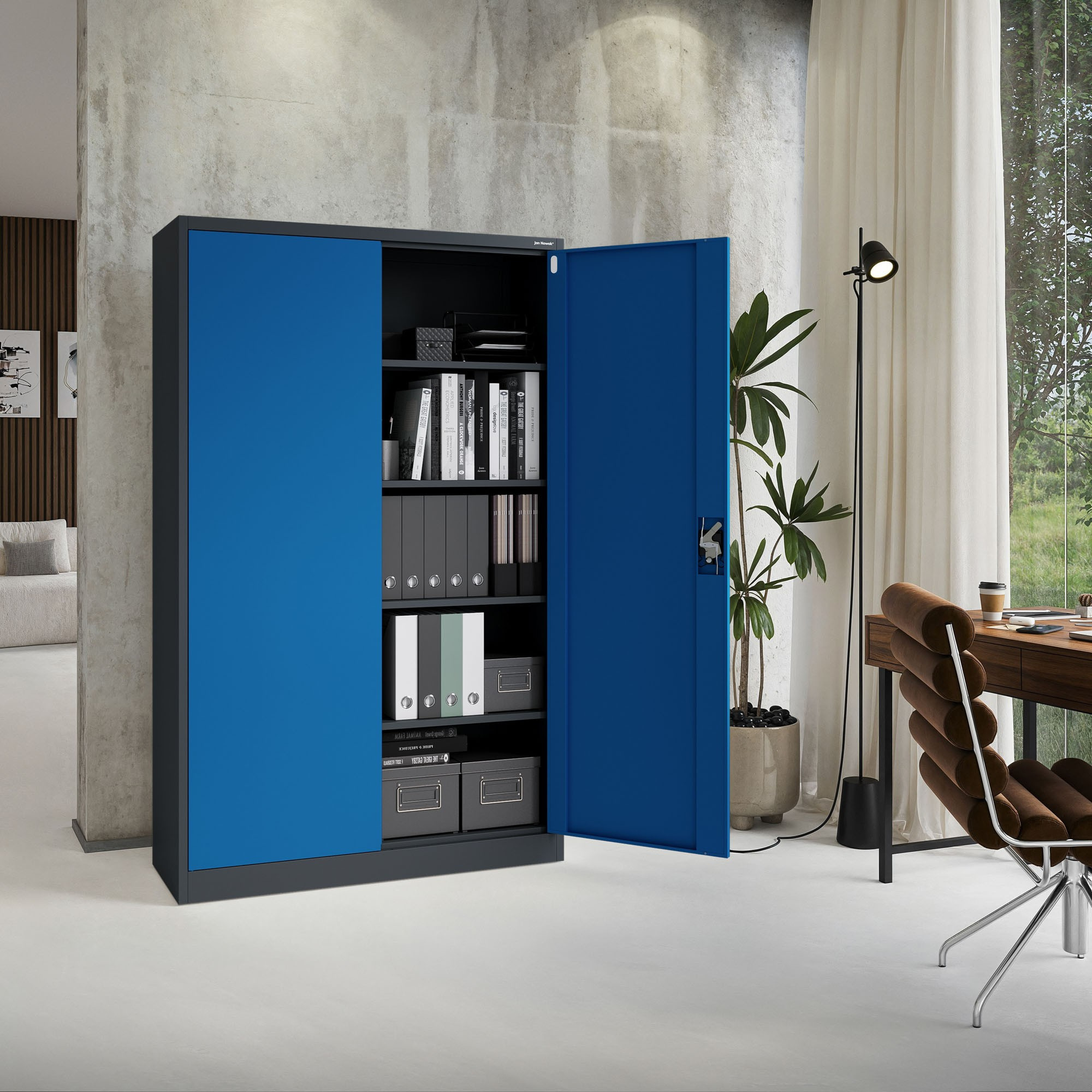 Hledáte spolehlivé a elegantní řešení pro uskladnění dokumentů, nářadí, zdravotnického vybavení nebo čehokoliv jiného? Představujeme vám skříň JAN II v atraktivní antracitově-modré kombinaci, která se stane nejen praktickým, ale i designovým prvkem vašeho interiéru.
