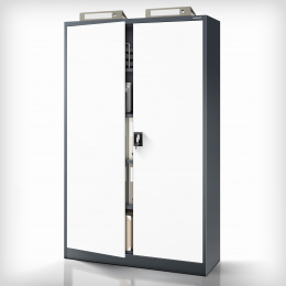 Díky dvoukřídlým dveřím se zámkem uzamykatelným ve 3 bodech si můžete být jisti, že vaše uložené věci jsou v bezpečí. Součástí balení jsou 2 klíče, takže máte vždy záložní variantu.