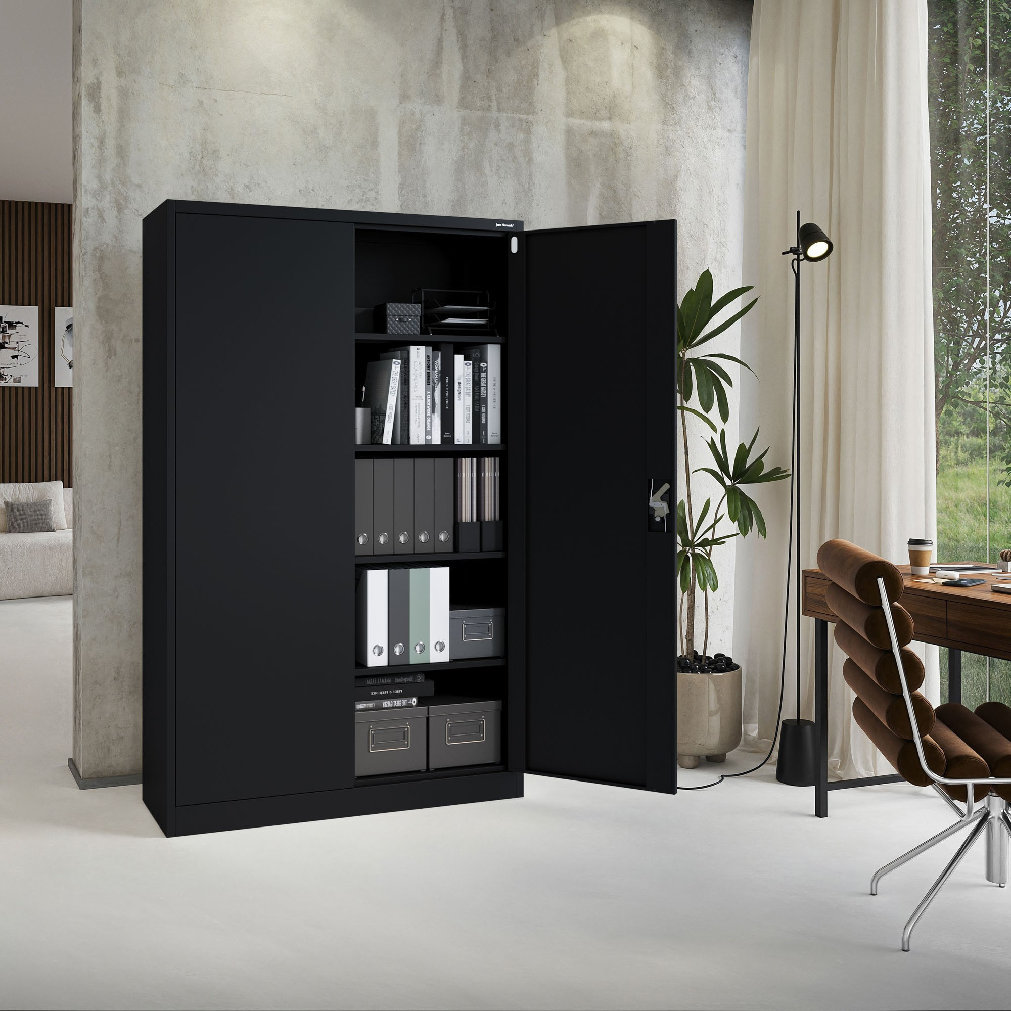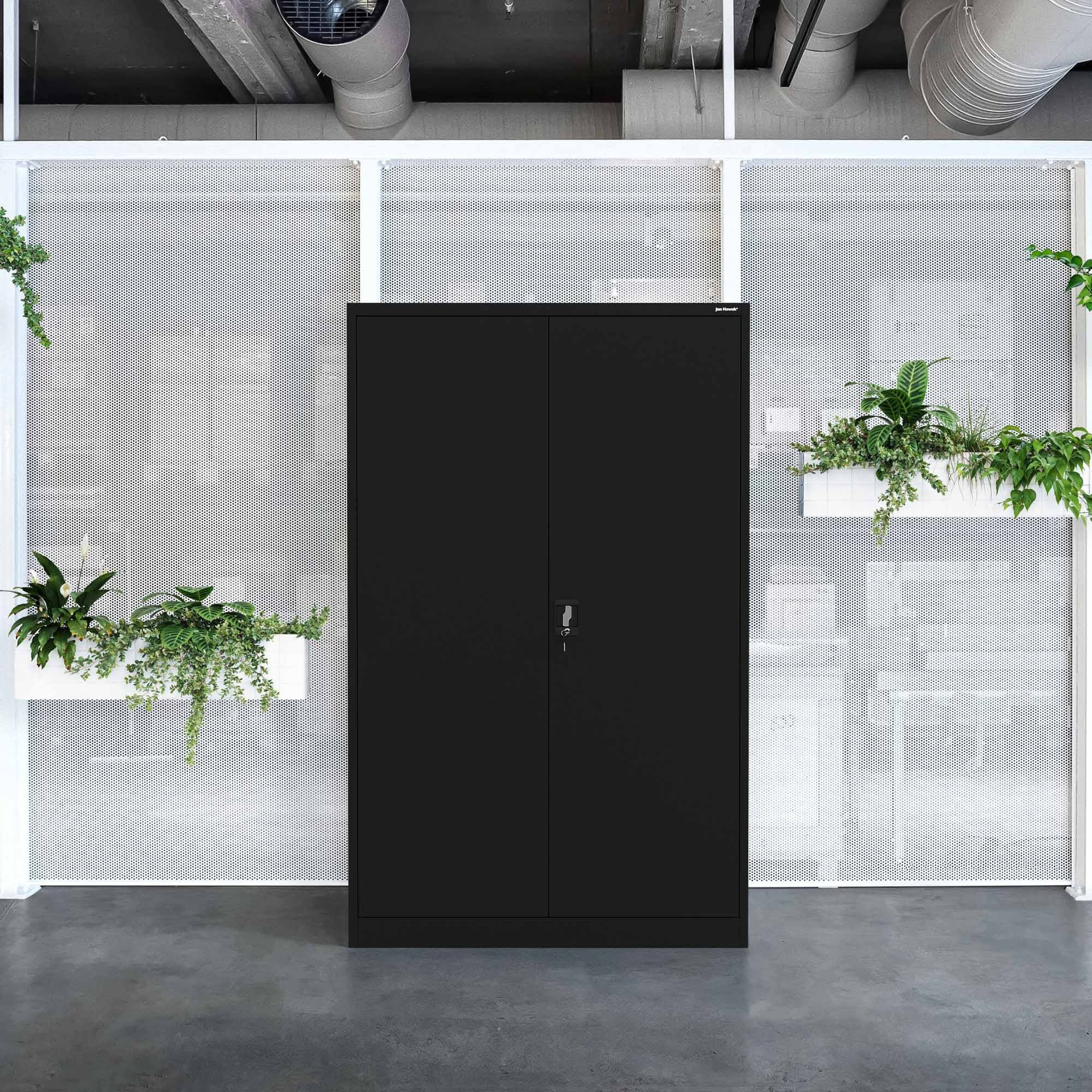 Kancelářská kovová skříň na dokumenty černá JAN II, 1150 x 1850 x 400 mm