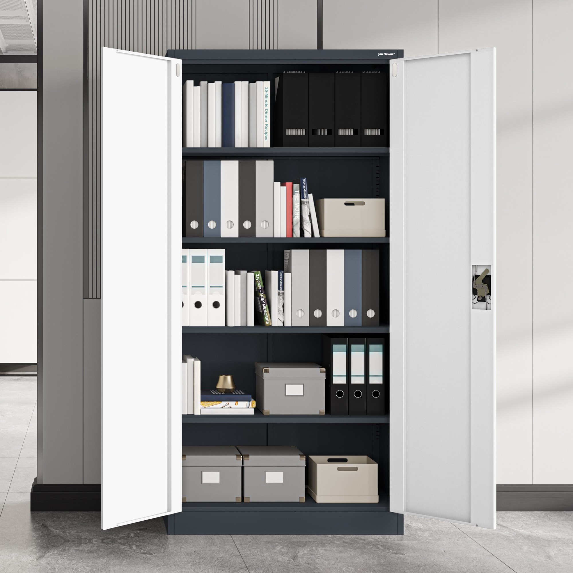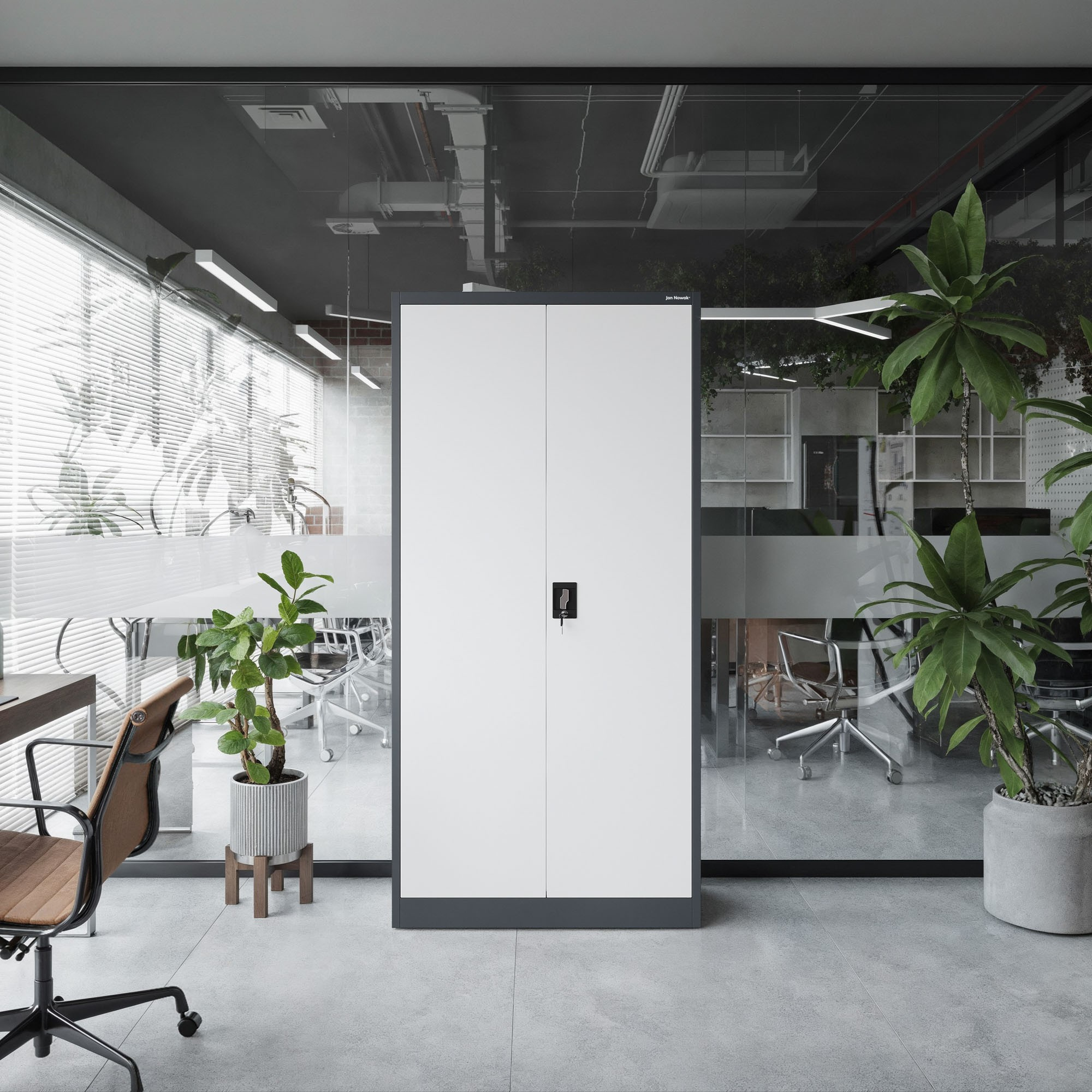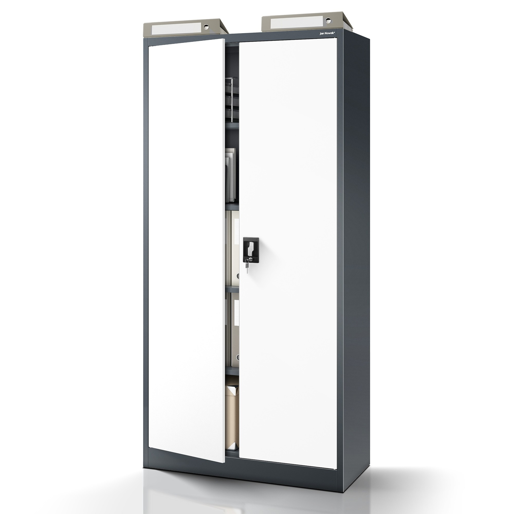 Kancelářská kovová skříň na dokumenty JAN, 900 x 1850 x 400 mm, antracitově-bílá