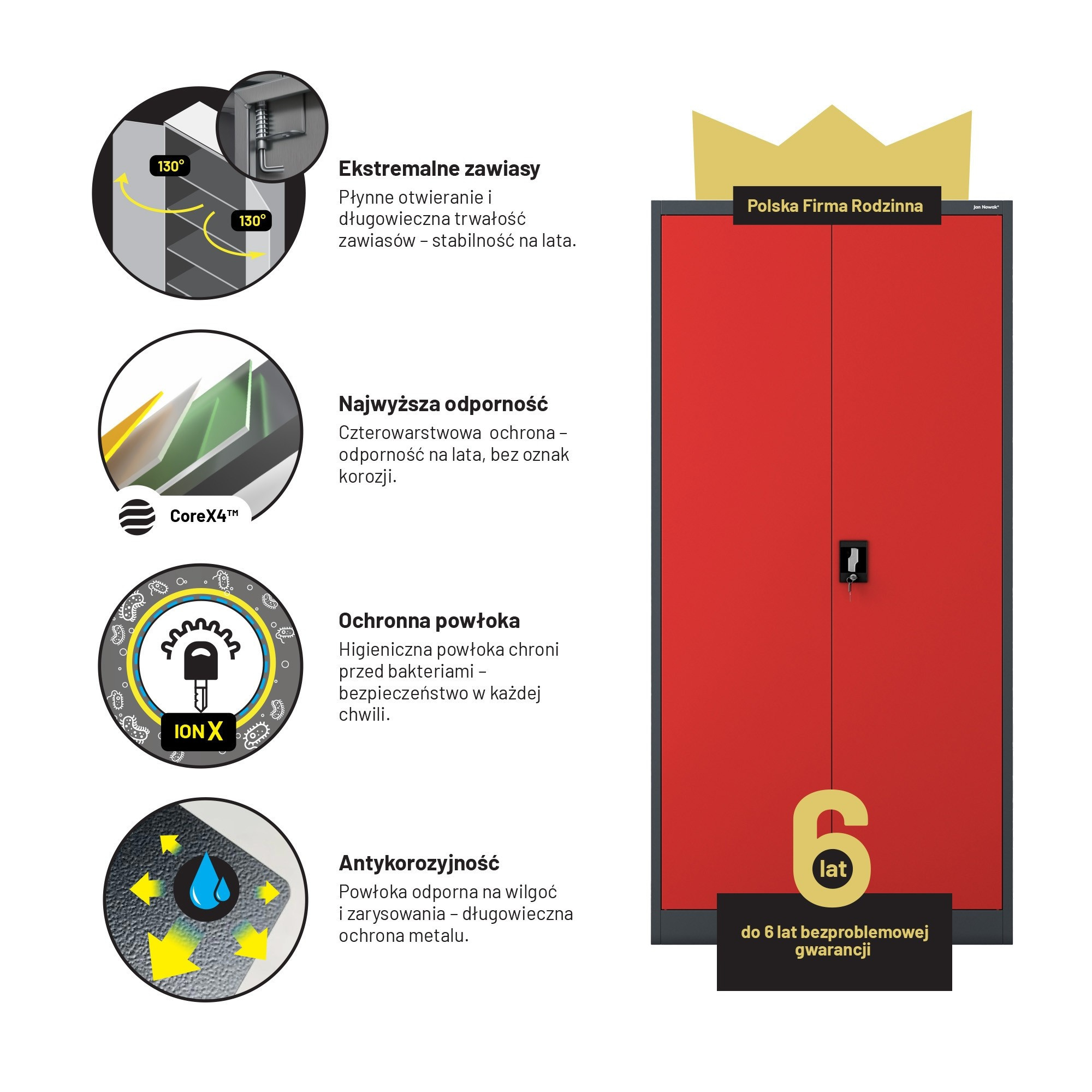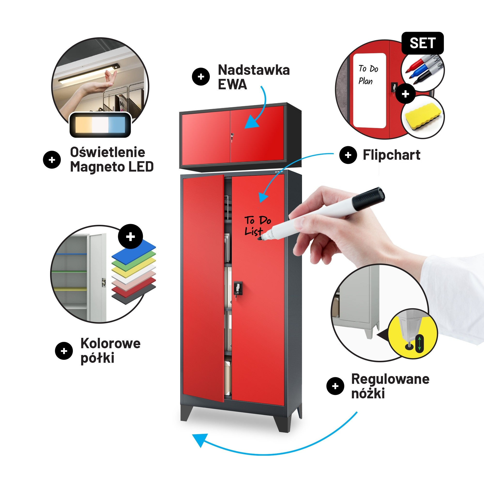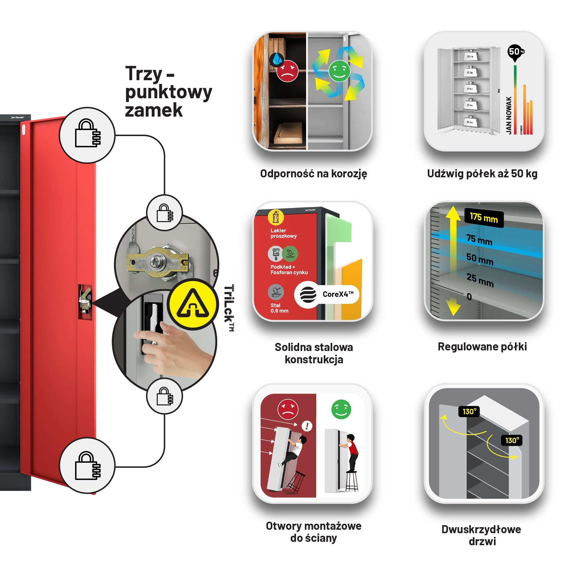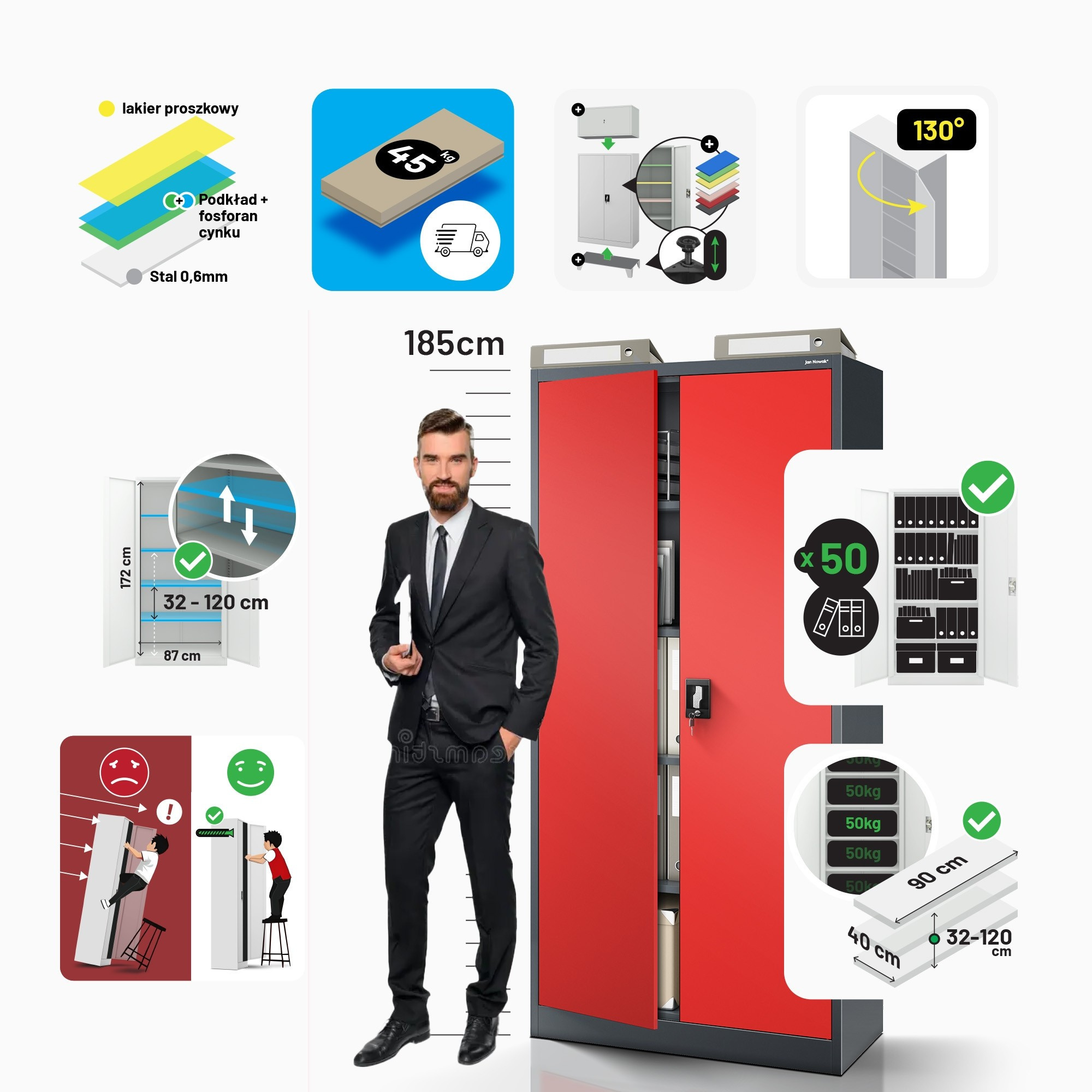 #html-body [data-pb-style=H8EC000]{justify-content:flex-start;display:flex;flex-direction:column;background-position:left top;background-size:cover;background-repeat:no-repeat;background-attachment:scroll}#html-body [data-pb-style=P4PCXXU]{border-style:none}#html-body [data-pb-style=D1N9P4T],#html-body [data-pb-style=RYBTBEE]{max-width:100%;height:auto}@media only screen and (max-width: 768px) { #html-body [data-pb-style=P4PCXXU]{border-style:none} }Kancelářská skříň JAN – antracitově-červená Skříň – ocelová, kancelářská, antracitově-červená, na dokumenty Kovová skříň na spisy JAN Málokterý produkt na trhu se může pochlubit tak propracovaným designem, trvanlivostí a funkčností jako kovová skříň na spisy JAN. K tomu je to kancelářský nábytek, který se vyznačuje všestranností použití. skříň do kanceláře, školy, firmy skříň na lékařské vybavení skříň na nářadí Díky svému stylovému, industriálnímu charakteru je ocelová skříň JAN také oblíbenou volbou pro individuální zákazníky. Nejdůležitější vlastnosti ocelové skříně na dokumenty JAN Naše kovová skříň je vybavena otvory na zadní a boční stěně, které umožňují její připevnění ke stěně. Zvýší to bezpečnost každodenního používání. Otvor v horní části skříně umožňuje připevnit nástavec. Ocelová skříň na dokumenty JAN v antracitově červené barvě se vyznačuje stylovým, minimalistickým designem. Jeho konstrukce je odolná a promyšlená tak, aby uživateli poskytla možnost libovolného uspořádání prostoru díky nastavitelným policím. Zadní část naší kovové skříně se skládá ze dvou částí. kapacita – až 50 šanonů bezpečnost – dvoukřídlé dveře, zámek zajištěný ve 3 bodech (2 klíče v sadě) odolnost – ocel o tloušťce 0,6 mm (vysoce odolná proti mechanickému poškození) funkčnost – 4 police nastavitelné po 25 mm (celková nosnost až 200 kg) Skříň na dokumenty JAN – specifikace výška 185 cm šířka 90 cm hloubka 40 cm hmotnost 42 kg barva antracitově červená RAL 7016 – RAL 3020 Proč stojí za to? Záruka kvality Pevné provedení a nejlepší materiály. To je hodnota, kterou je těžké najít jinde na trhu! Bezpečná řešení Nezapomínáme na kontrolu našich produktů ve všech ohledech a na jejich vybavení příslušnými certifikáty, jako například. atest PZH. Produkt GDPR 2018 Skříň na dokumenty navržená speciálně s ohledem na předpisy související s GDPR 2018. Podrobnosti o dodání skříň je dodávána v částech (vyžaduje vlastní montáž) Kolekce Kancelářský nábytek – kvalita podepsaná jedním z největších dodavatelů ocelových skříní v Evropě.