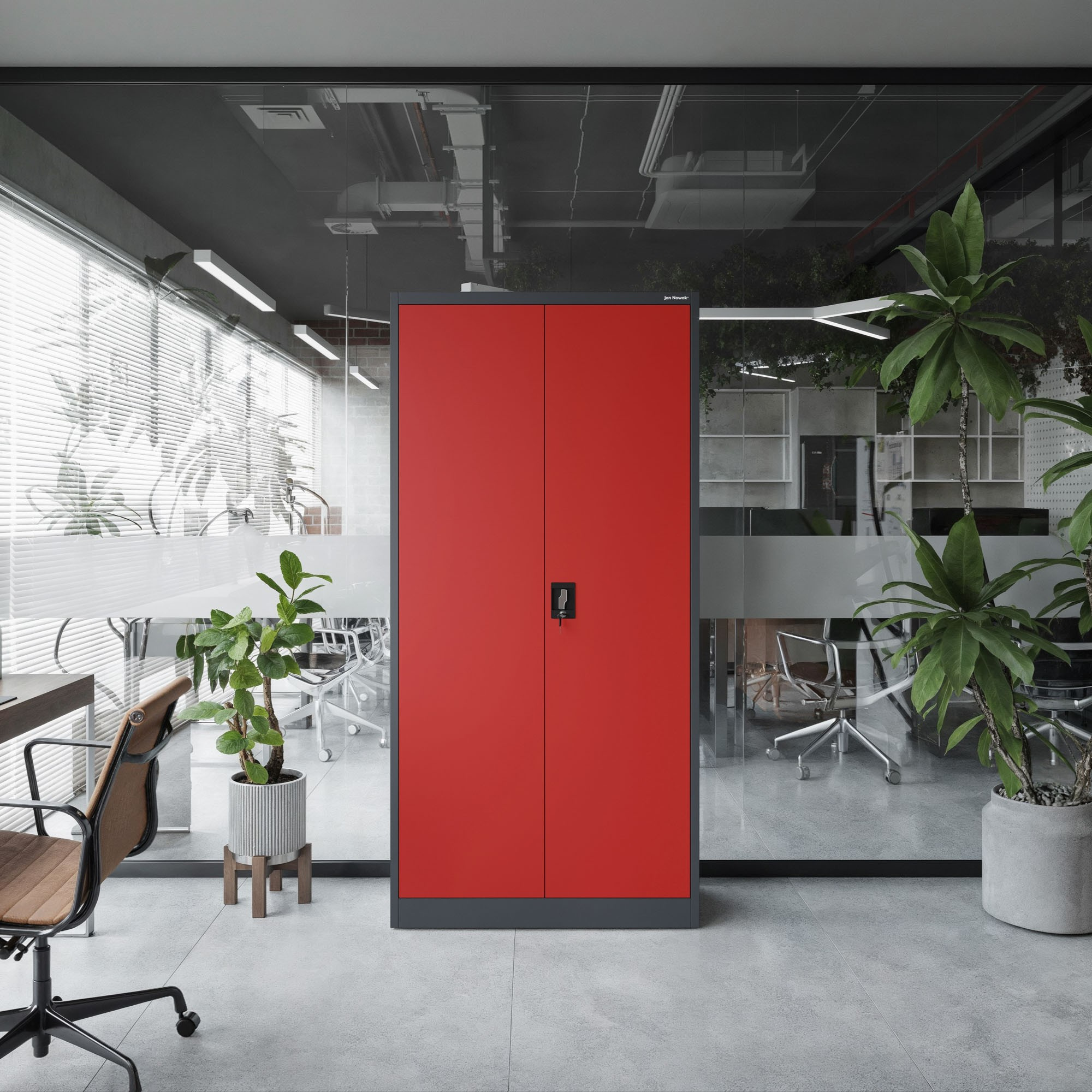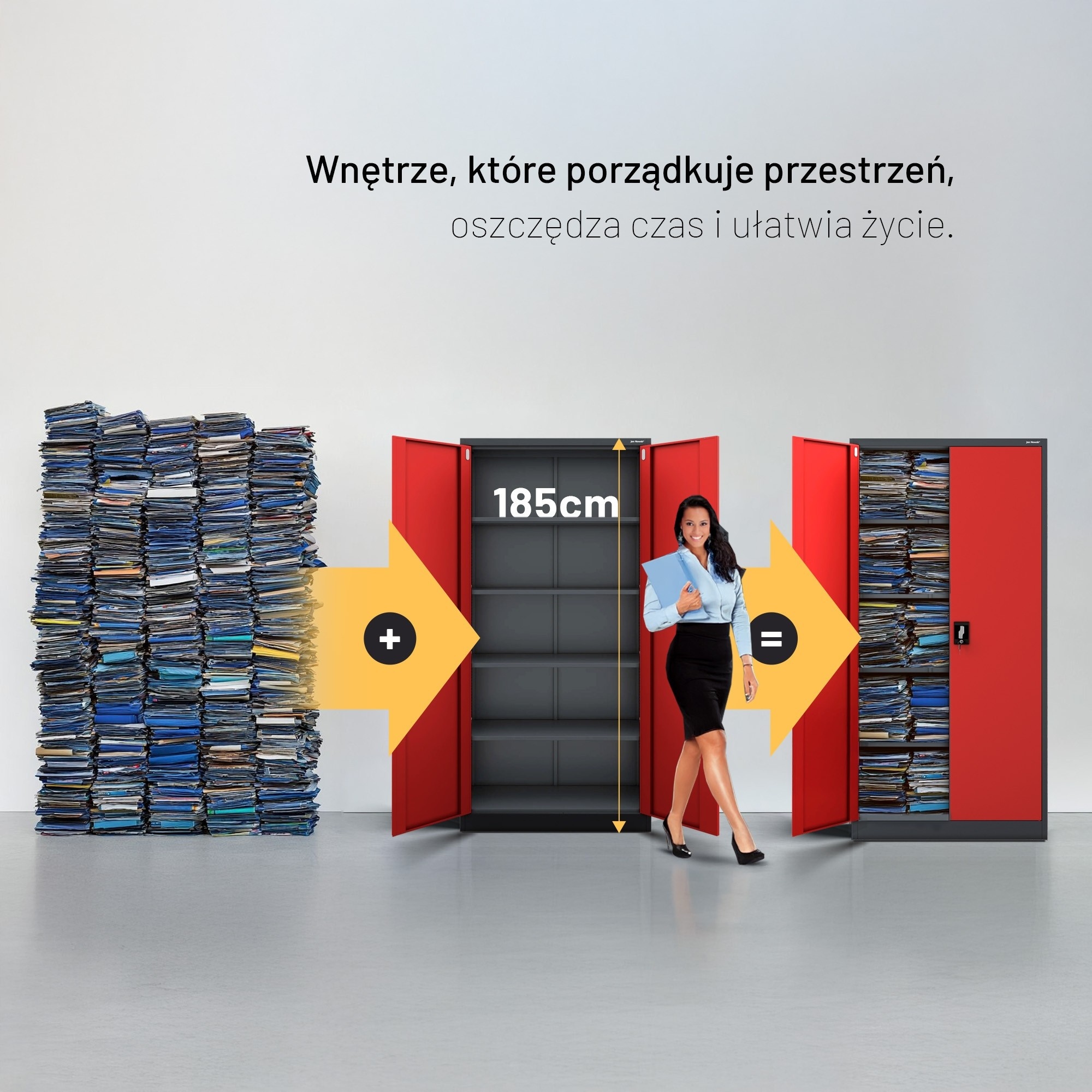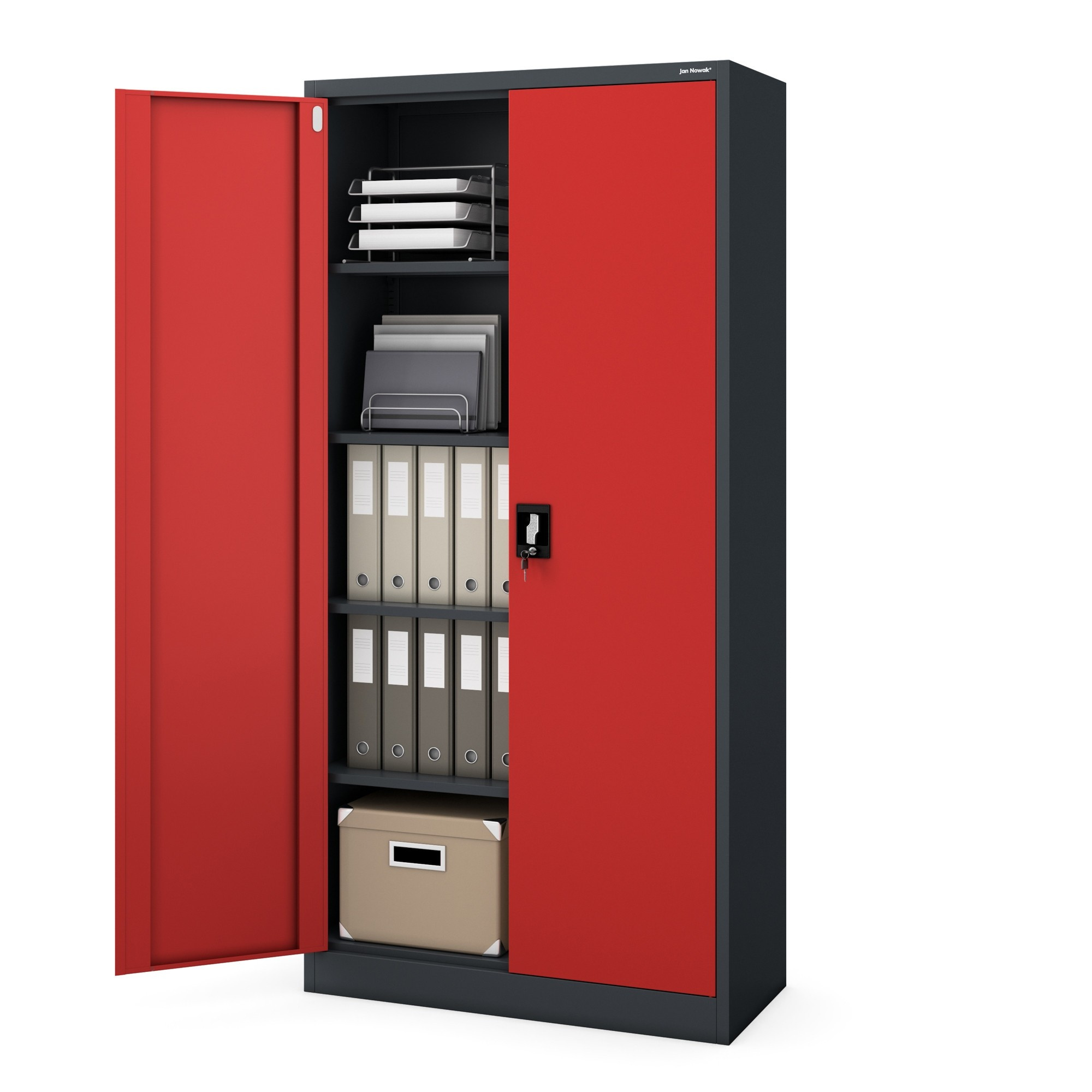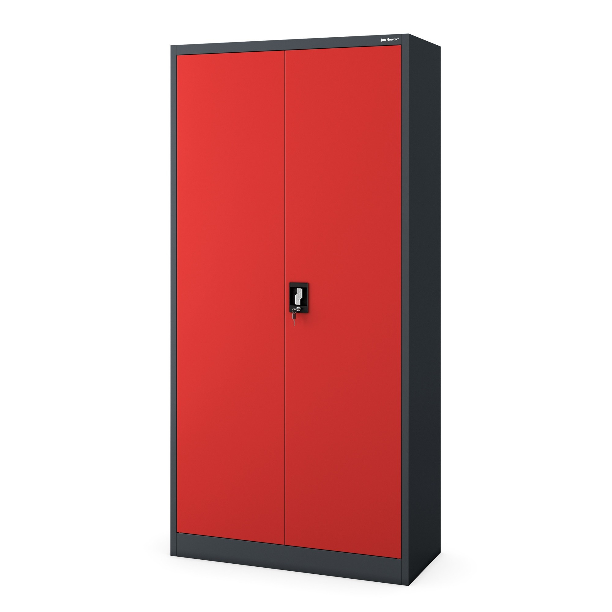 Kancelářská kovová skříň na dokumenty JAN, 900 x 1850 x 400 mm, antracitově-červená